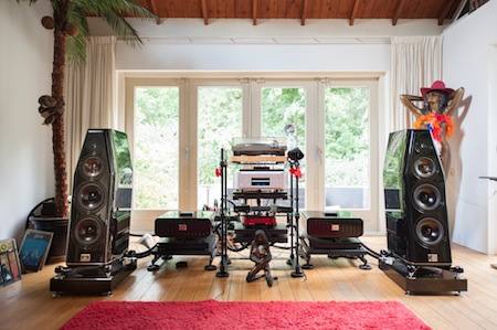 De liefde voor de hifi gaat diep bij Eric. Heel diep. Zo kocht hij een jaar geleden geen Ferrari, geen buitenhuisje en geen zeilboot, maar een nieuw huis. Een fraai vrijstaand huis, in een lommerrijke wijk in Arnhem, vlak bij een natuurplas. Een huis voor zijn speakers, met fijne akoestiek, mede door een extreem hoog plafond. Vrijstaand bovendien, zodat hij ongestoord kon ‘blazen’, iets dat hij nu met de regelmaat van de klok doet.
