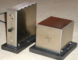 De twee kleine kastjes staan allebei op een keramiek voet en stralen weinig uit. 2000 Euro lijkt heel veel geld voor de glad stalen behuizing met nauwelijks knopjes. De voeding is het zwaarste en bezit twee aansluitingen. Een euro connector voor 230 volt en één voor een kabeltje dat naar het andere deel van de versterker loopt. Op dat andere deel een schuifpotentiometer als volume regelaar. En drie tuimelschakelaars. Met de onderste activeer je de luidsprekers, met de bovenste twee kies je uit de drie ingangen. De achterzijde van dit deel toont de inputs, een line out, de speaker aansluitingen en de kabel voor de voeding. Het is even wennen om de ingangen te kiezen omdat de tuimelschakelaars samen werken. Als je het systeem door hebt blijkt het erg handig te zijn.