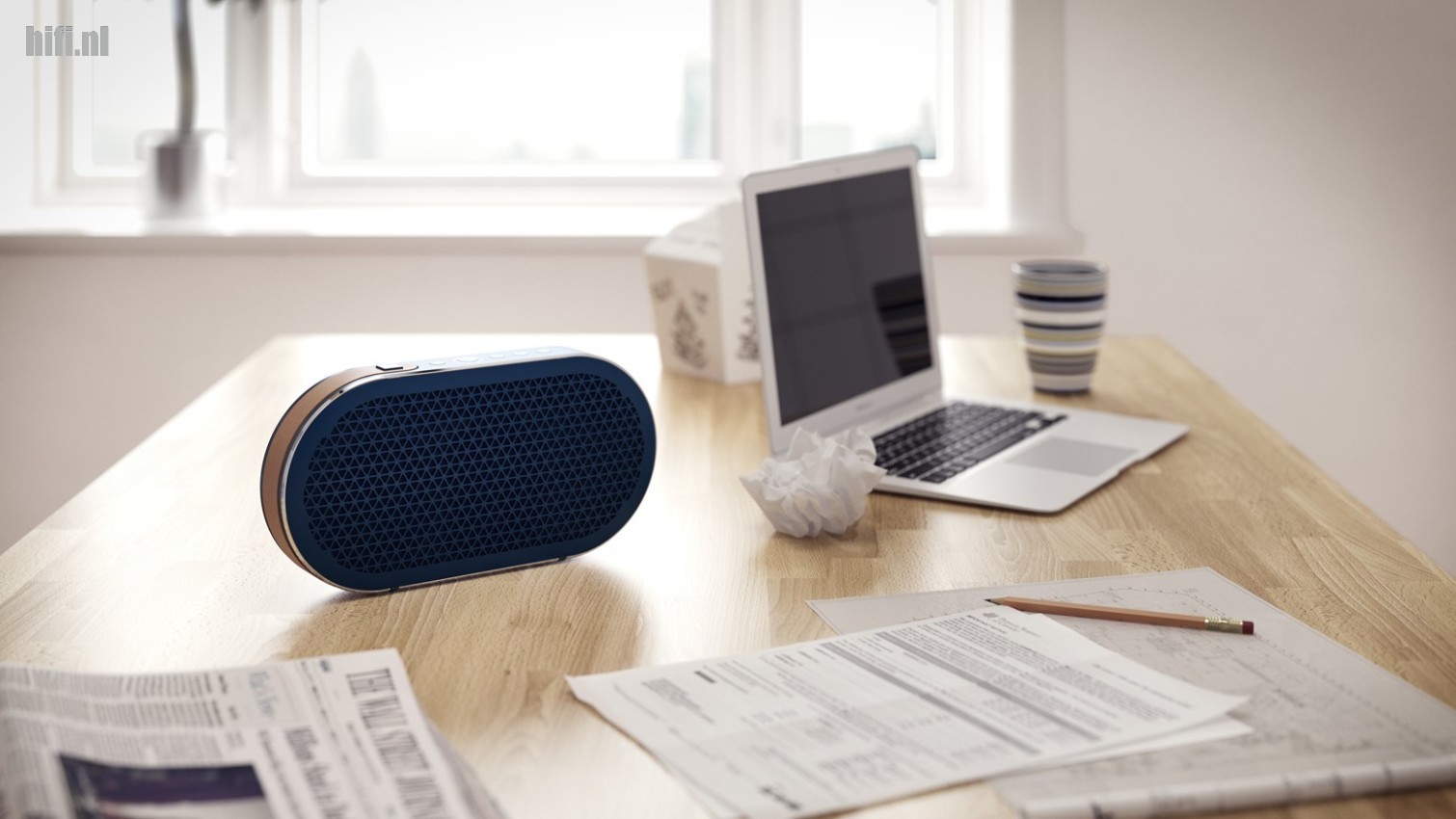 En inderdaad, het testexemplaar is identiek aan de ‘officiële’ modellen die we hiervoor kort in ons bezit hebben gehad. Qua looks, leren band en zelfs de verschillende kleurstellingen lijken de Denen wat inspiratie te hebben gehaald uit de BeoPlay A2, al is die minder elegant. Ons exemplaar was mooi diep blauw (Dark Shadow) met een blauw metalen zijkant, een luxe uitziend leren handvat en de minimalistische knoppen aan de bovenkant.