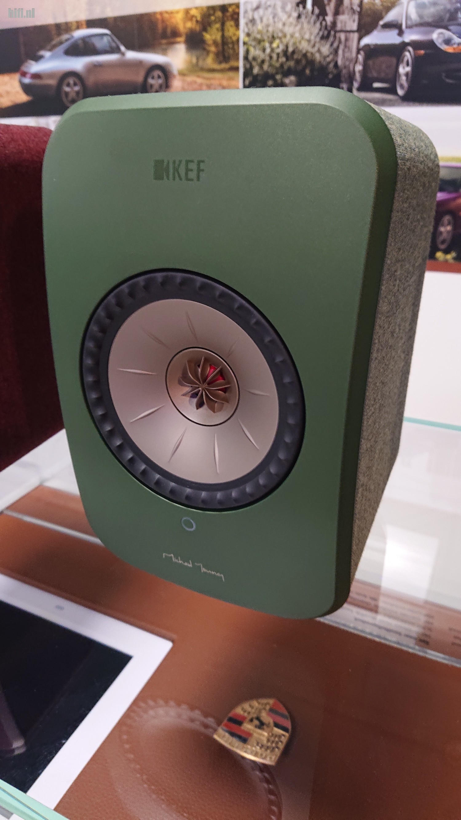 De schijnwerpers richten op de diverse demoruimtes van GP Acoustics in het Koning Willem II Stadion kan natuurlijk niet zonder de kleinste nieuwe telg van KEF te (her)bezoeken: de KEF LSX.