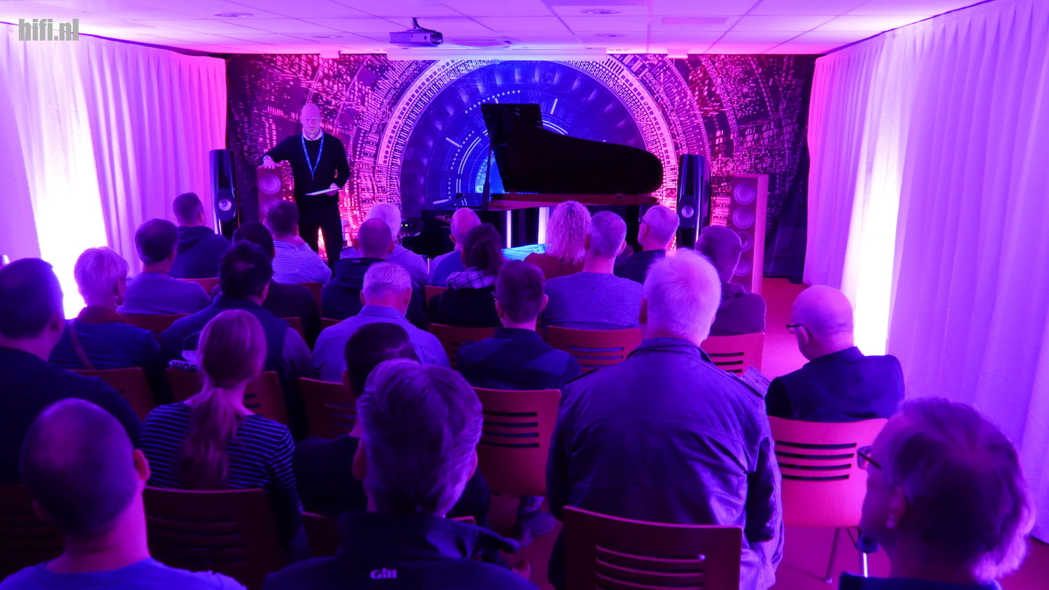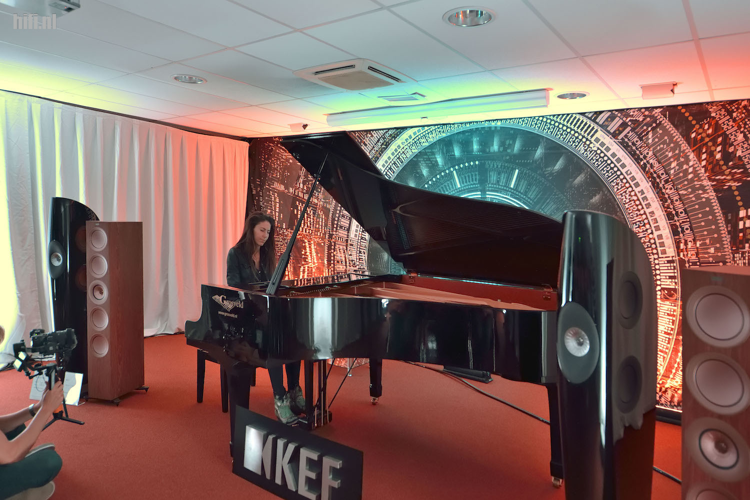 In een van de gezelligere – en consequent goed gevulde – ruimtes van de show stonden aan weerszijde van een klassieke piano namelijk én een paar Blade Two’s én een paar KEF R11’s opgesteld. De motor voor die opvallende verschijningen was de 22 kilo zware H590 geïntegreerde versterker, een apparaat dat enkele maanden na de verschijning al een voortrekkersrol speelt in zijn categorie. In deze grote zaal beneden trokken KEF en Johnson behoorlijk wat publiek om naar het vlaggenschip van de vernieuwde R-reek en het topmodel van Hegel te komen luisteren. Op de zaterdag waren er bovendien afwisselend optreden van Iris Hond, wat de fraaie vleugel uit de eerste zin van deze alinea verklaart – waarover later meer.
