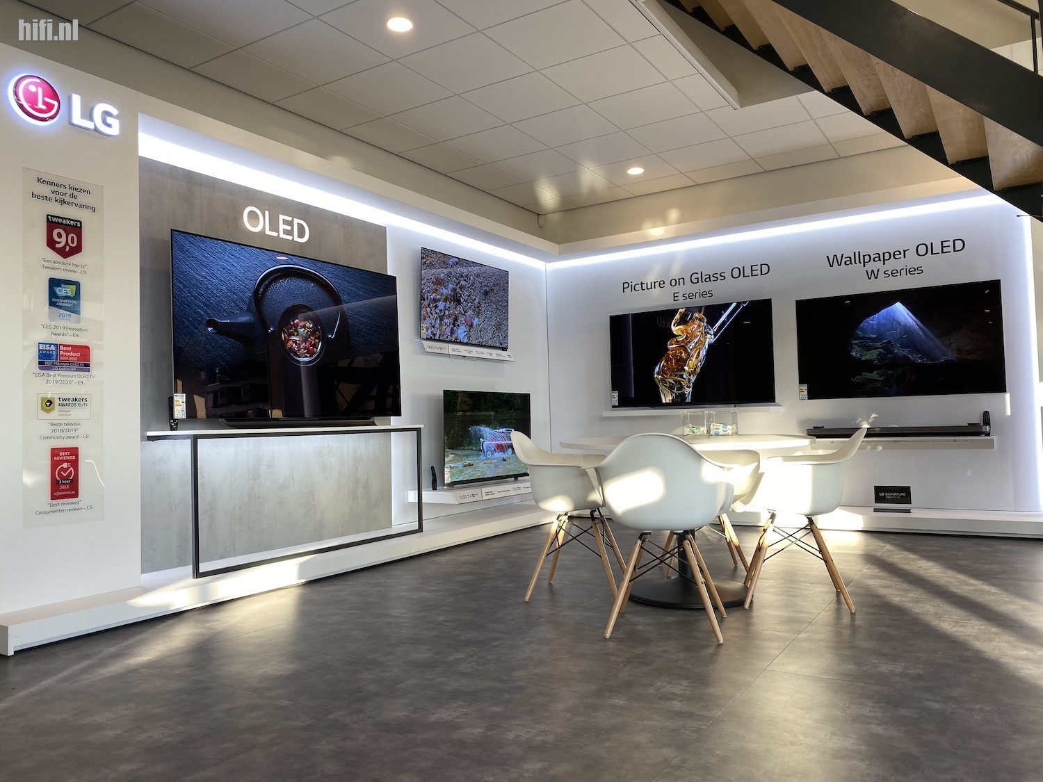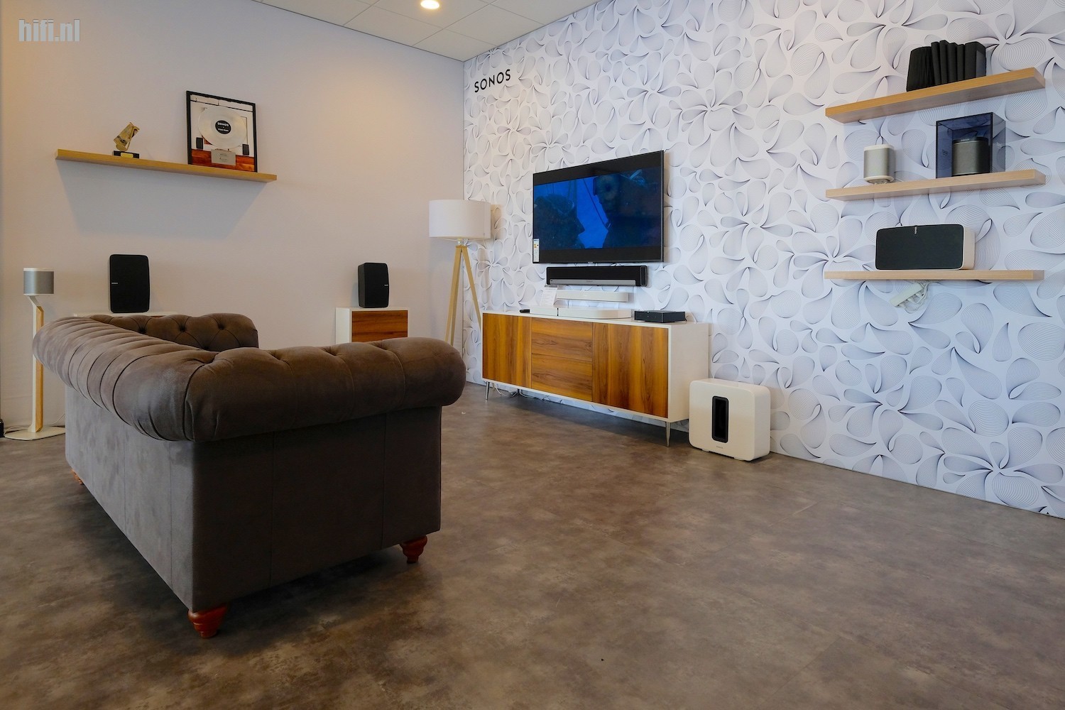 Bob leidt ons na aankomst eerst door de omvangrijke showroom met draadloze luidsprekeroplossingen op de begane grond. Naast de toonbank is een gezellig huiskamerhoekje ingericht met de oplossingen van Sonos. Hier kan de bezoeker onder het genot van koffie of thee het intuïtieve gemak van Sonos ervaren. Aan de wanden pronken de laatste generatie 4K UltraHD televisies in formaten vanaf 55-inch en groter.