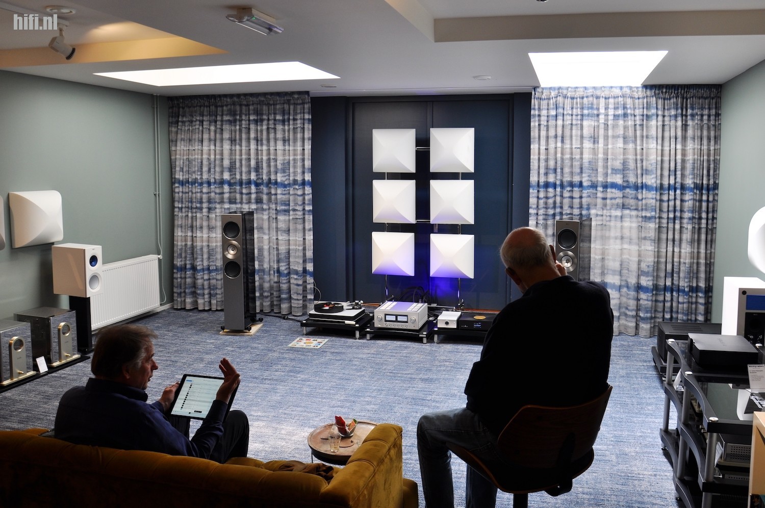 Aan het eind van de middag is het tijd geworden om in de luisterruimte van Listening Matters plaats te nemen, waar een prachtige set staat opgesteld. Een set KEF Blade 2 wordt aangestuurd door een geïntegreerde Luxman L-509X versterker. Als bron dient de Grimm Audio MU-1 als Roon Core en server, in combinatie met een Mola Mola Tambaqui DAC. Twee Nederlandse producten die volgens de internationale hifi pers tot het beste ter wereld op het gebied van digitale audio behoren. Alleen dát is al reden om trots te zijn, maar als Ben de track Walking On The Moon aanzet, in een uitvoering van het Yuri Honing Trio, zakt de iPad die ik ter notitie in de aanslag hield langzaam op mijn schoot en verdwijn ik in de muziek.