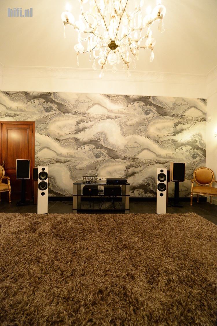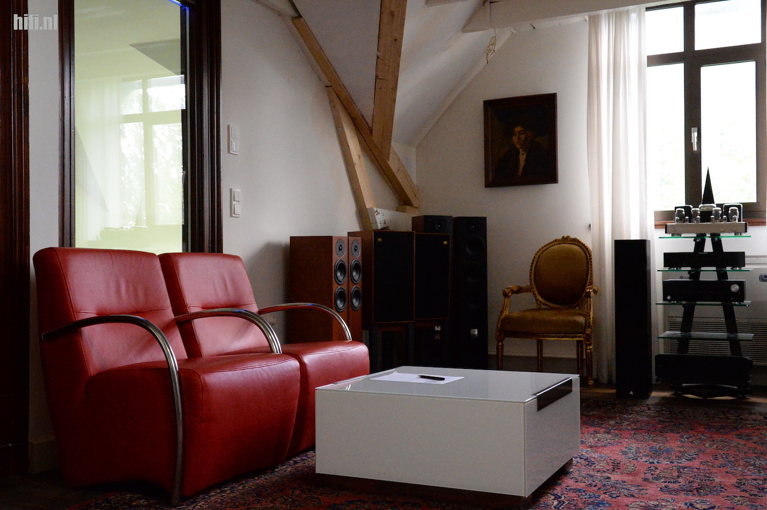 De set speelde in een aparte luisterruimte die alleen werd ingenomen door deze apparatuur. Edwin en Bob waren zeer uitnodigend met betrekking tot de vrijheden die werden geboden teneinde de set nog beter te laten klinken. Zoiets moet je natuurlijk niet aanbieden, want het is een enorme uitdaging om de prestaties tot het uiterste op te drijven. Dat werd dus even wat minuten experimenteren, tunen en stoeien met de fase. Dezelfde set stond uiteindelijk opgesteld op een manier die in de meeste huiskamers niet zo snel zal worden vertoond. Dat resulteerde in een vorm van live-stage beleving met een nog indrukwekkender laag en toegenomen breedte, diepte en focussering. Inspirerende ervaring om met z’n drieën bezig te gaan en luisterervaringen te delen. Het blijkt dan ook dat de beide heren zeer goed kunnen luisteren. Uiteraard kun je nog wat verdere stappen nemen, maar voor de lezer toont het gewoon aan dat deze set dermate kwaliteiten heeft dat die thuis nog verder kunnen worden benut door eens goed bezig te gaan.