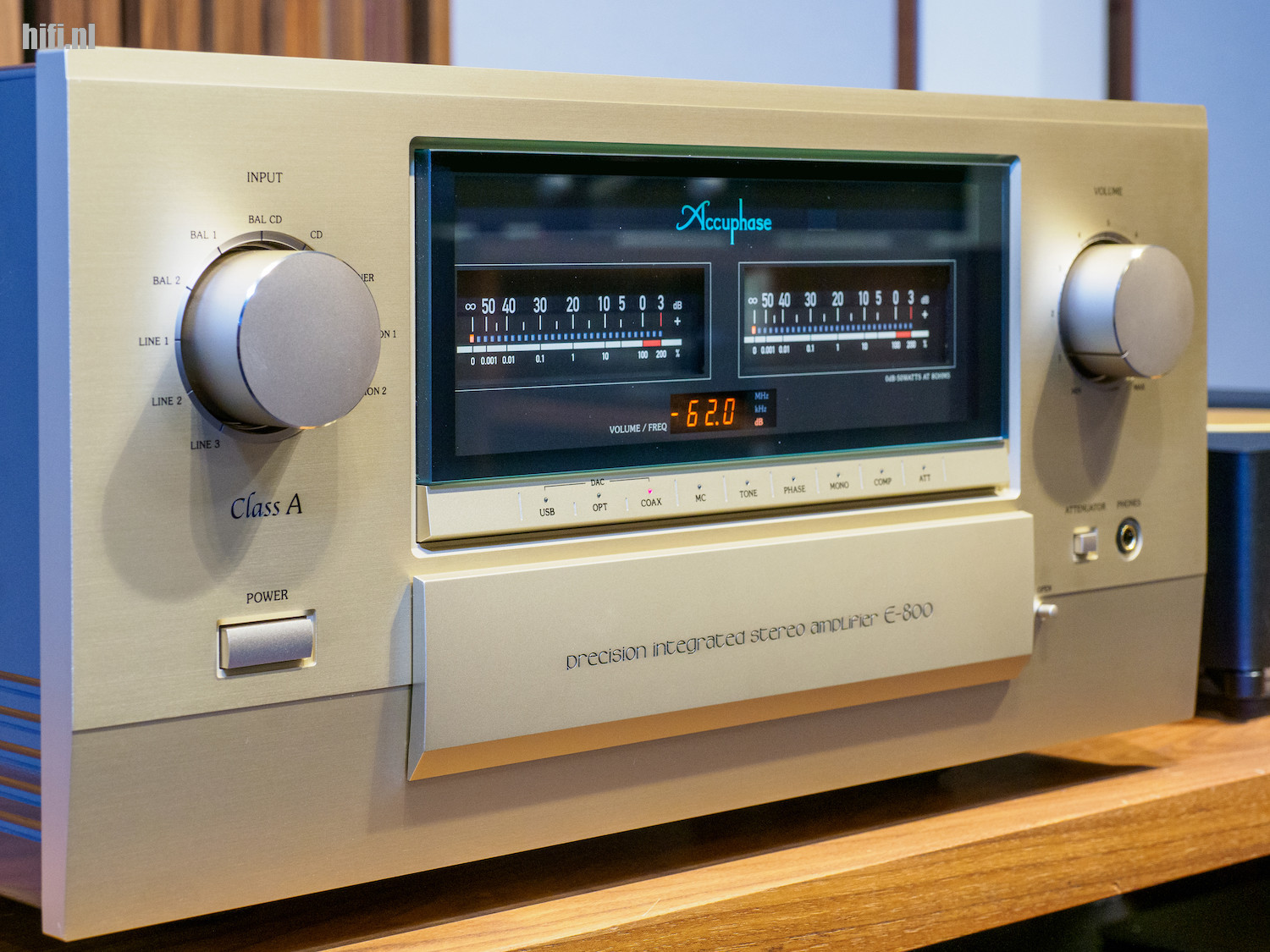 Wijze woorden, denk ik, en daarmee is het tijd geworden om naar de grote luisterruimte te verkassen, waar de voor deze Hi-Visit geselecteerde set al fraai muziek staat te maken. Als hart van de set dient de nieuwe Accuphase E-800 geïntegreerde versterker, een jubileum-model dat het vijftigjarig bestaan van de Japanse fabrikant luister had moeten bijzetten maar dat door dat vermaledijde virus wat langer op zich liet wachten. Hij was de vertraging echter méér dan waard, want deze grote, volledig gebalanceerd opgebouwde versterker levert op soevereine wijze 50 Watt Klasse-A aan 8 Ohm. Hij is stabiel tot maar liefst 1 Ohm en gooit dan niet minder dan 300 Watt Klasse-A in de strijd. Dit exemplaar is voorzien van de optionele DAC50 insteekkaart, waarmee het in feite een ‘Super-Integrated’ is geworden. Bij Accuphase is een ‘insteekkaart’ overigens een volwaardige da-converter, die binnen de versterker ook een eigen voedingslijntje krijgt. Het voordeel van een losse kaart is duidelijk: de versterker gaat sowieso een leven lang mee. De DAC feitelijk óók, maar in de digitale technologie vindt nog steeds veel verbetering plaats. Wie op dat vlak bij de tijd wil blijven kan na verloop van tijd dus volstaan met een DAC-wissel. Duurzaam!