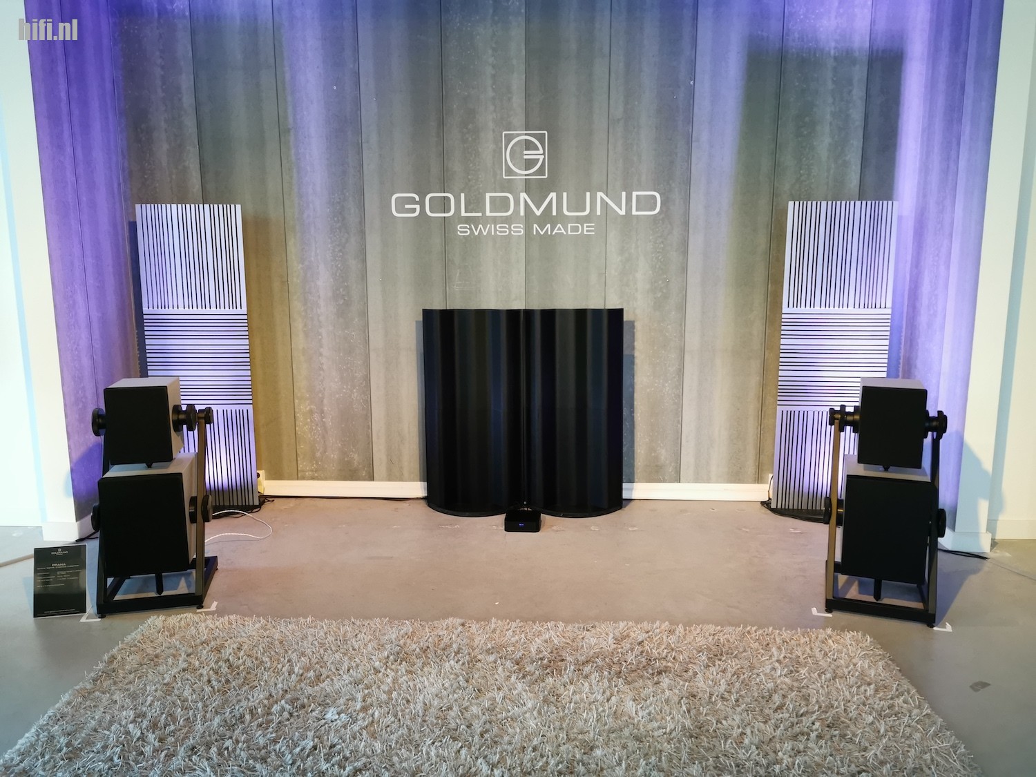 We hebben dat steeds stapsgewijs toegevoegd, en hebben nu een erg mooi totaalaanbod. In het geval van Goldmund zijn we de exclusieve importeur voor de Benelux, inmiddels ook alweer een aantal jaar. Er was een vaste klant bij RAF (Amsterdam) en die had een Reference turntable. In onze zoektocht naar het huidige merkenpakket zijn we ook door Nederland gegaan om merken te bezoeken die we op shows niet goed gehoord hadden. Vaak komt het op shows toch net niet helemaal goed voor het voetlicht. RAF had natuurlijk een enorm pakket, maar daar zaten ook merken bij die we niet wilden doen. We gingen eigenlijk voor Martin Logan naar Multifoon in Rotterdam en daar stond een set Goldmunds. Passief met losse versterkers. We schoven aan met onze vaste tracklist en een stapeltje meegenomen cd’s, en waren eigenlijk meteen verkocht.