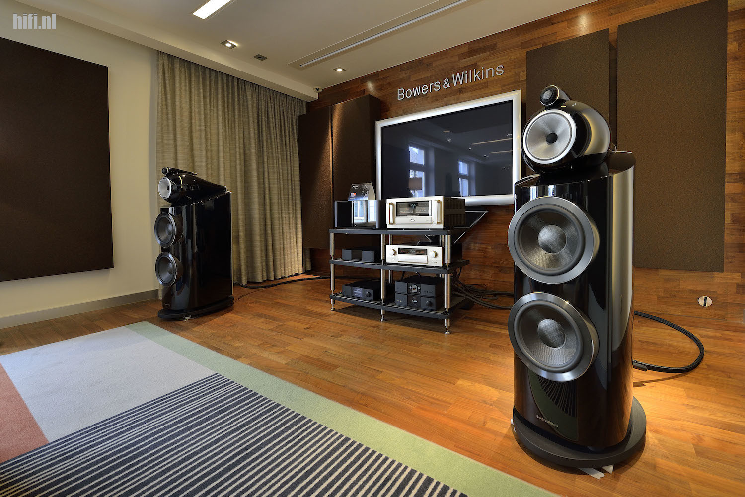Het zal u verder waarschijnlijk niet verbazen wanneer ik u vertel dat deze opstelling met afstand het mooiste en beste is wat ik vandaag bij deze van landelijke bekendheid genietende A/V-specialist heb gehoord. Het begint al met het visuele plaatje waarbij de in zwarte pianolak uitgevoerde 800 D3 weergevers prachtig chique afsteken tegen de warmhouten panelen van vloer en achterwand. Hoewel de luidsprekers echt fors zijn, is Bowers & Wilkins er bijzonder goed in geslaagd om dit door de vele ronde en vloeiende vormen goed te camoufleren.