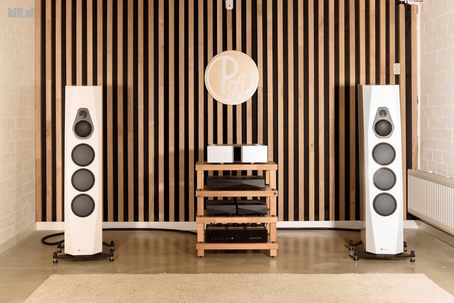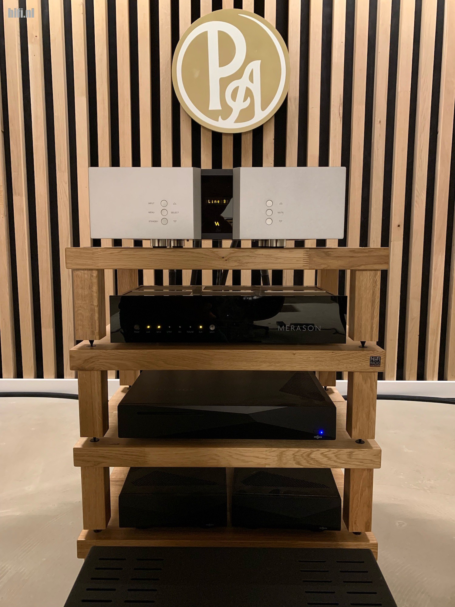 Alle bekabeling is van Purist Audio Design en Rob kiest voor de Aqueous Aureus lijn van het merk. Twee vragen aan Rob: is er geen ellende met het leveren van Innuos apparatuur vanwege de Brexit? “Nee, want Innuos wordt geproduceerd in Portugal, alleen ondersteuning komt rechtstreeks vanuit de UK”. Tweede vraag: Wat voor soort DAC is de Merason? “Het is een gebalanceerd werkende DAC op basis van Burr Brown 1794A converters”. Tijdens het luisteren kreeg ik steeds meer het idee naar een ladder DAC te luisteren (R2R), dat klopt deels. De BB 1794A werkt voor de zes Most Significant Bits als R2R en voor de overige achttien bits op het bitstream principe. Dus geen DSD, geen MQA, but who cares!