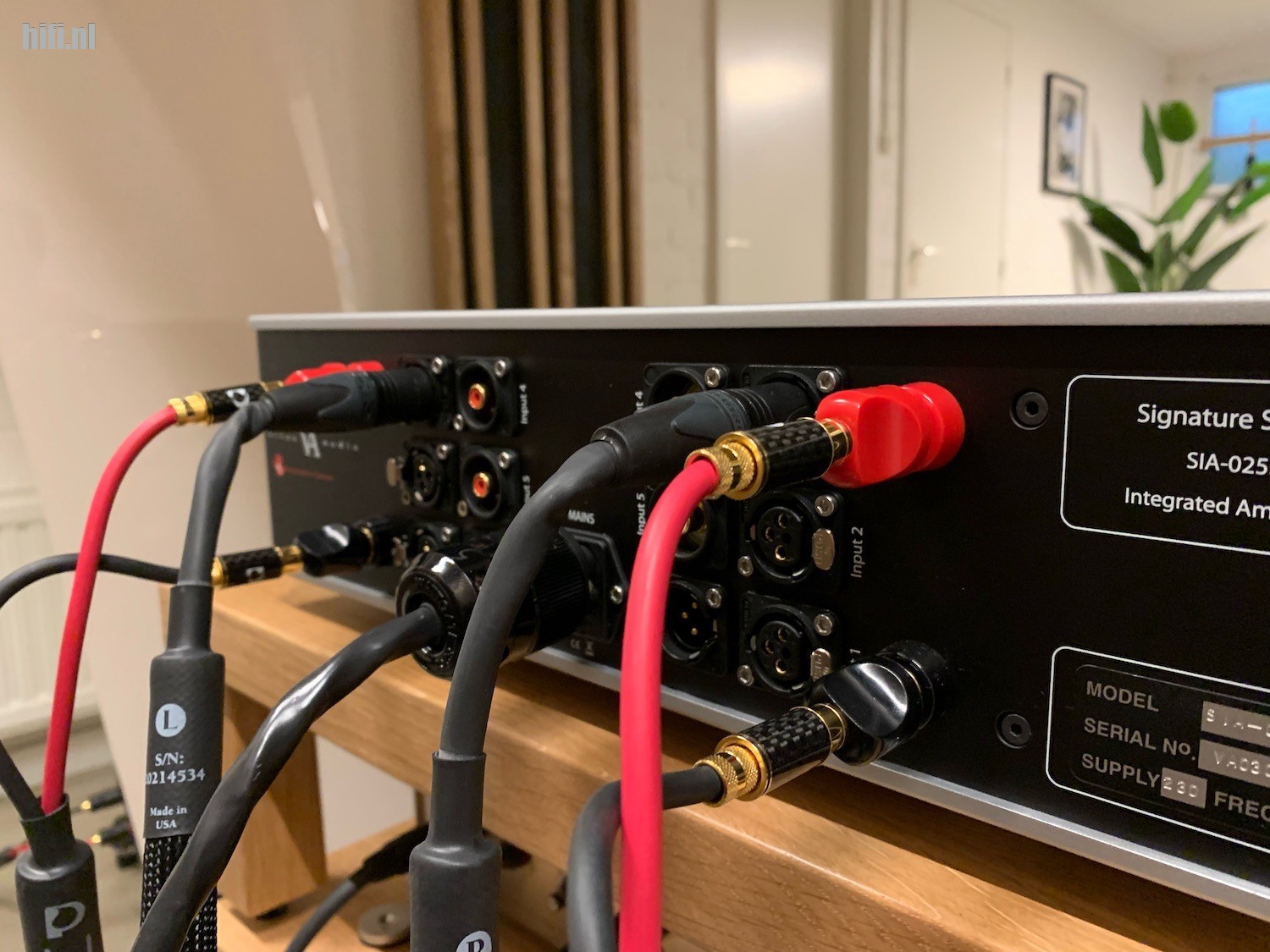 Misschien wel net zo strevend naar perfectie en trots op wat hij maakt is Hans Ole Vitus, de man achter Vitus Audio in Denemarken. De Vitus SIA-025 is een geïntegreerde versterker met een klasse A instelling, waarbij hij goed is voor 2x25Watt of in klasse AB ingesteld 2x150 Watt, steeds aan 8 Ohm gemeten. Klasse AB is eigenlijk alleen nodig bij luidsprekers met een extreem laag rendement, of luidsprekers geplaatst in een grote luisterruimte waarbij extra vuurwerk, drive en power gewenst is. De SIA-025 heeft drie gebalanceerde XLR ingangen en twee ongebalanceerde RCA bussen. Er is een XLR pre-out. Per ingang is de gevoeligheid instelbaar. Het frequentiebereik wordt gespecificeerd als DC tot 800kHz, dat geeft aan welke techniek is gebruikt, geen condensatoren in de signaalweg en snelle transistoren. De ingangsimpedantie is met 10kOhm vrij laag, dus een beetje oppassen met de bronnen die u aansluit.