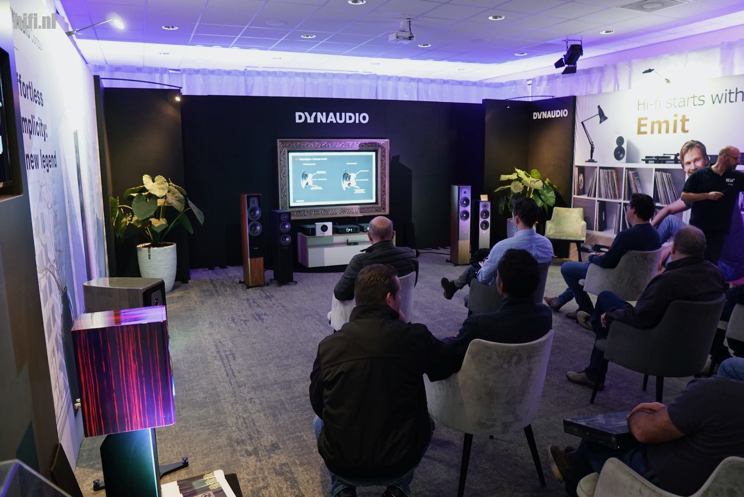 “Wacht, dat zijn niet de Contour 30i’s die aan het spelen zijn?”. Ja, toegegeven, we waren wel echt verbaasd toen we na het aanhoren van enkele tracks in de Dynaudio-suite te horen kregen dat niet de high-end luidsprekers vooraan van dienst waren. Dat enorme laag en het inzichtrijk midden kwam uit de veel betaalbaardere Emit 30’s die ernaast stonden! Sterk, eerst hoe een stukje van Vivaldi’s Vier Seizoen (Herfst, als we het goed herinneren) en daarna ‘Bear with Me’ van de Belgisch-Caraïbische Charlotte Adigéry daar klonken. Volgens ons waren er wel meer mensen in het publiek die het niet meteen doorhadden.