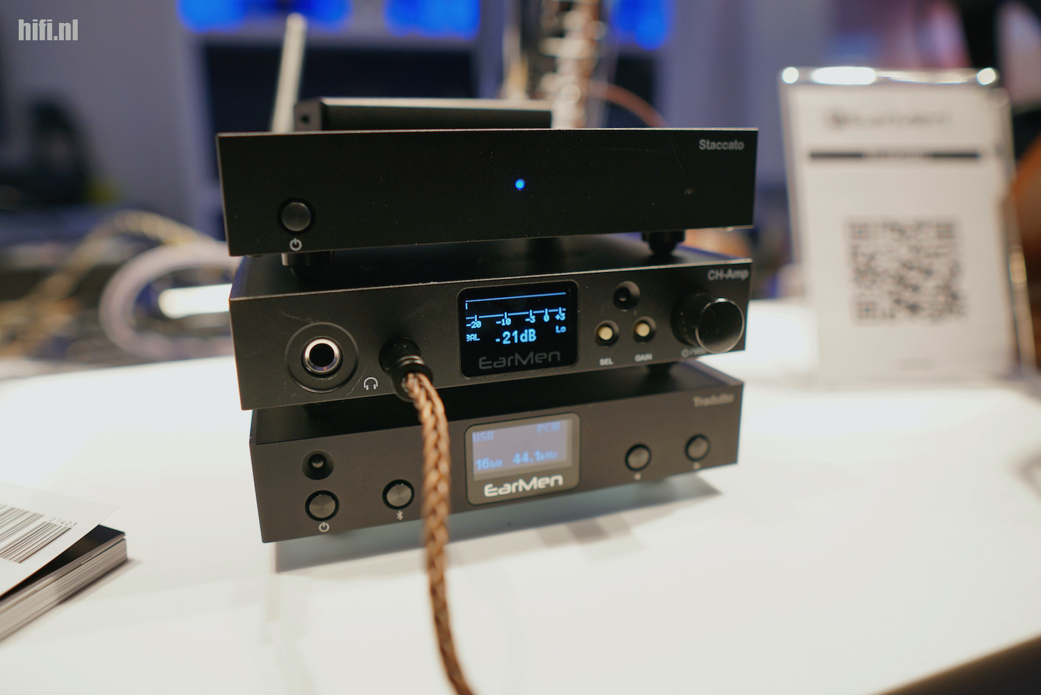 We onderzochten ook geboeid een aantal nieuwe producten van Earman, een soort spinoff van Auris Audio uit Servië. Een tijdje terug waren we echt onder de indruk van hun Tr-Amp, op iEar konden we een grotere versie bewonderen. Te herkennen aan de blauwe kleur. Iets helemaal anders was de Tradutto DAC die opgebouwd is rond de ES9038Q2M-chip en naast veel ingangen ook Bluetooth biedt.