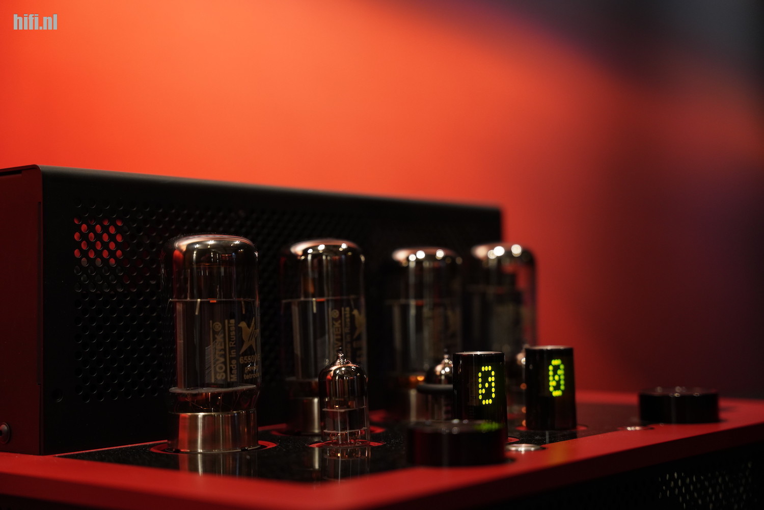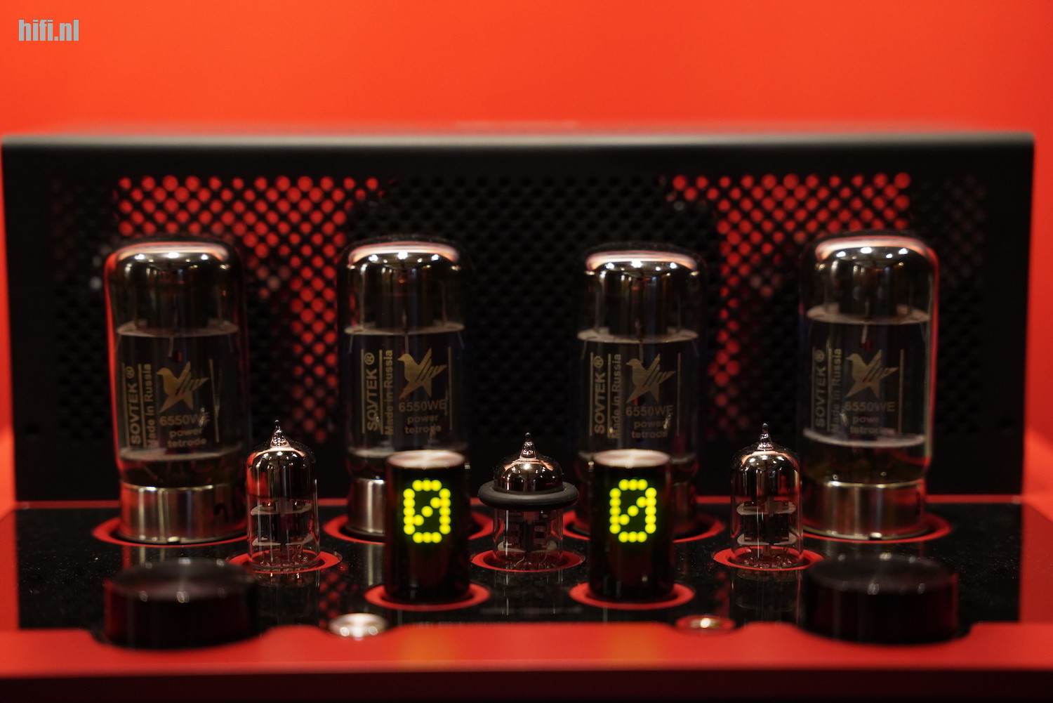 “De i50 wordt onderdeel van een kleine reeks waarin een p50 voorversterker en een a50 eindversterker ook zullen verschijnen. De basis is het gebruik van een drietal 6922 buizen, één voor de versterking, twee als drivers voor een viertal 6550 buizen. De transformatoren zijn zoals altijd door ons ontworpen, speciaal voor deze serie. Op de i50 staan aan de voorzijde twee Lexie Tubes, onze eigen naam voor een Nixie-achtige buis, waarin wij met LED’s aangeven welke bron is ingeschakeld of wat de volumestand is."
