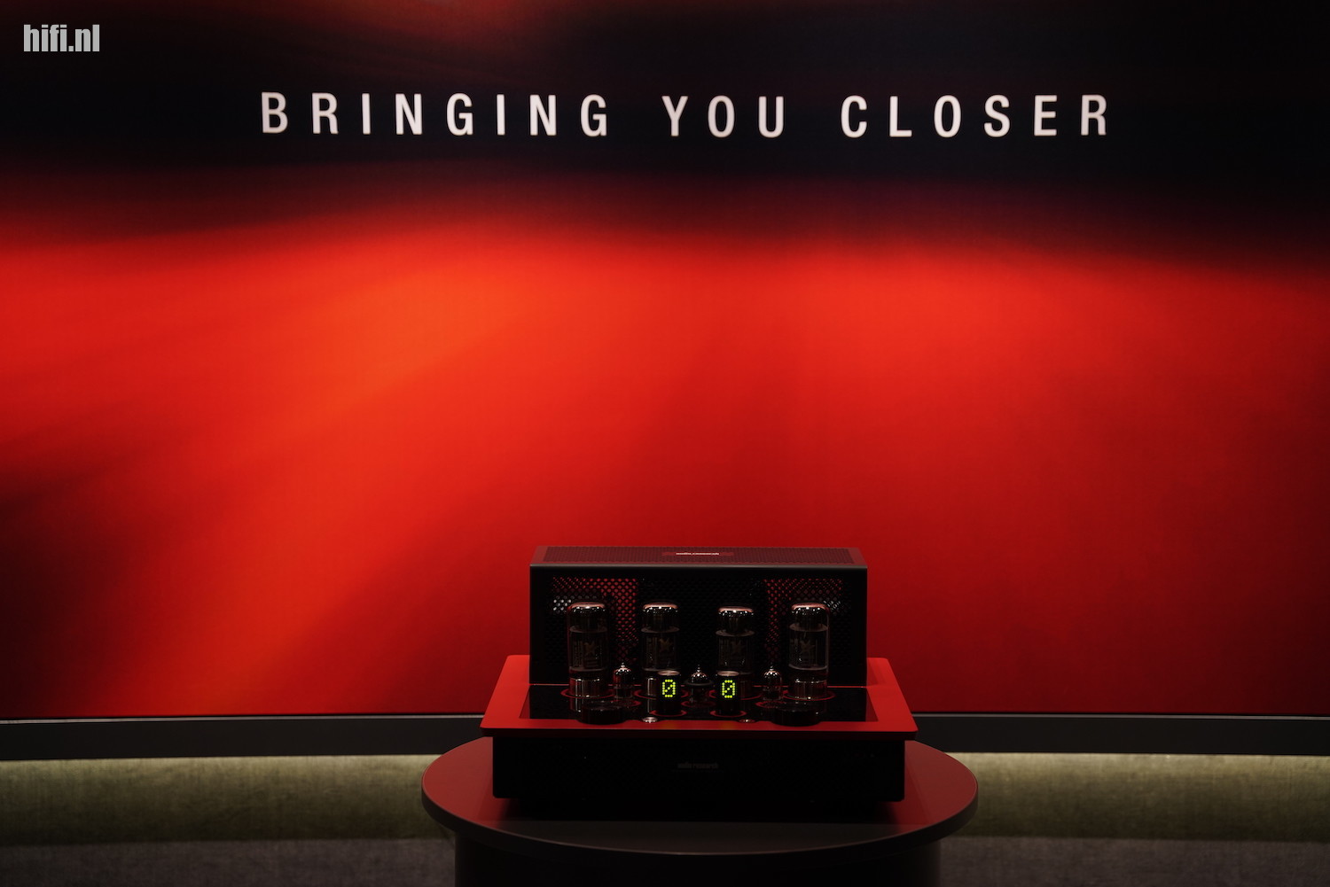 "Toch is het ons gelukt om een echte Audio Research versterker te bouwen waarin de sound van het merk behouden is, de unieke eigenschappen een plaats hebben gevonden en waarvan het gebruiksgemak gelijk is aan een transistorversterker. Hier staat de Audio Research i50 geïntegreerde versterker. Een versterker gemaakt in ons eigen bedrijf, waarvoor de onderdelen als printen en metaalwerk lokaal worden betrokken. Als je kijkt naar het metaal dan zie je dat het is gespoten in een flinterdunne Ceracoat laag, zeer sterke keramische lak. Trouw aan onze filosofie het beste te brengen op de markt zijn alle opschriften niet gedrukt, maar met een laser aangebracht, zelfs op de achterzijde waar de aansluitingen zitten.”