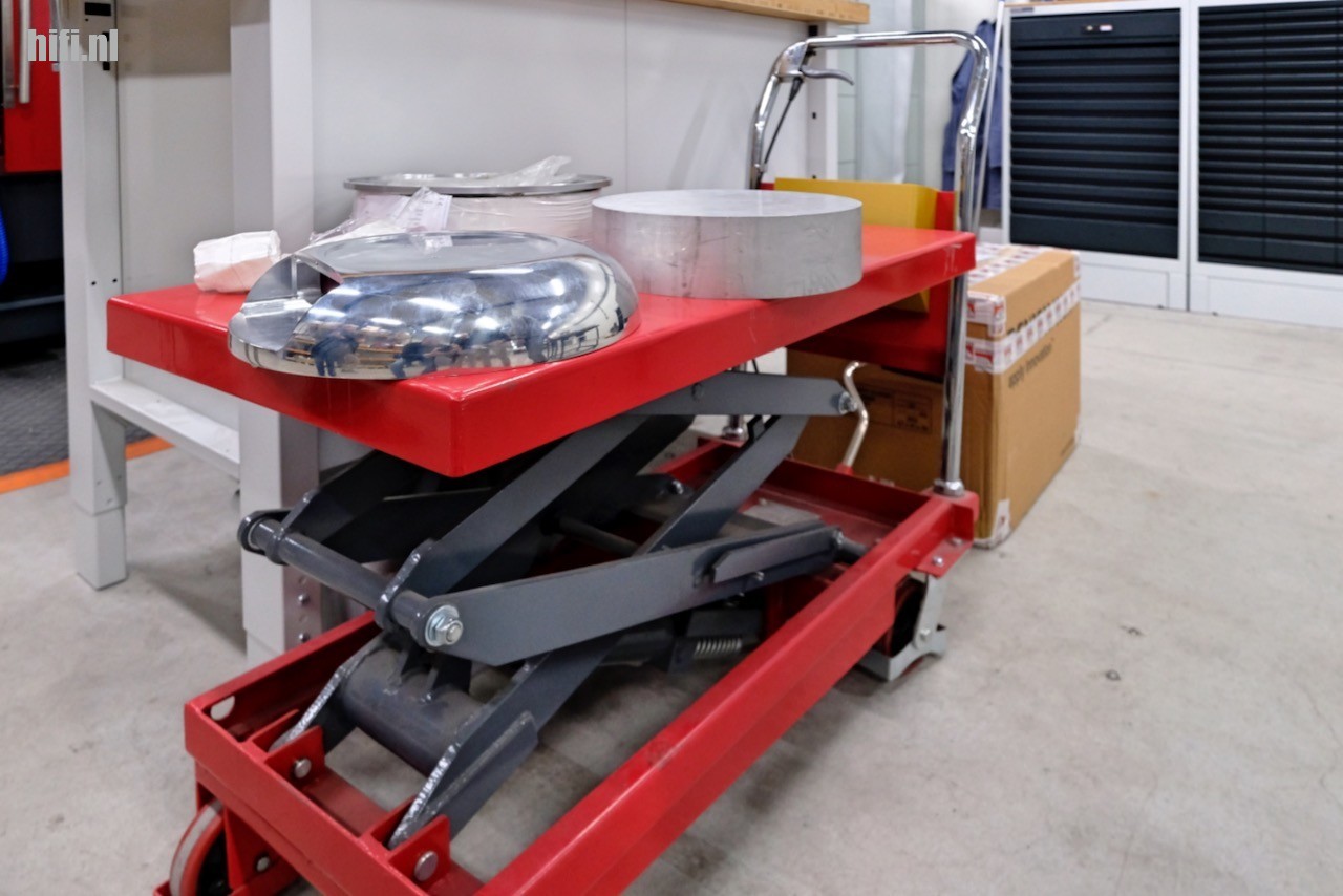 Terwijl we door de productiehal worden geleid wordt ons de ‘subwoofer’ van de Atom getoond. Deze wordt, net als bij de grotere Origin, trillingvrij onder de mid-hoog unit gemonteerd en afgefilterd op 150Hz. Feitelijk kunnen we met de Veddan Atom spreken van een ‘halve’ Origin. De onderzijde van de originele Origin is komen te vervallen en de gehele Origin is in mini uitvoering in de top ondergebracht.