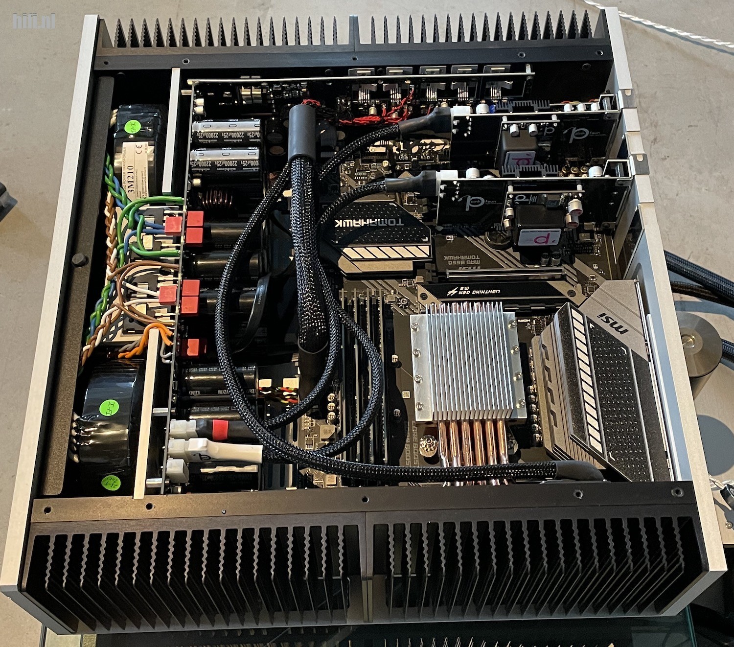 A unique part of the chassis design is the honeycomb motherboard platter. This platter is extremely stiff and this design handles various vibrations will eliminate resonance frequencies without over damping them in order to preserve and maintain energy. During the development processes of the 2.16 Ultra, the manufacturer xperienced vibration on the motherboard that had a significant negative impact on the sonic performance. Instead of damping the vibration, they decided to eliminate all possible vibrations by making a special platter inside the streamer, mounting the critical components on top to eliminate all possible vibration.