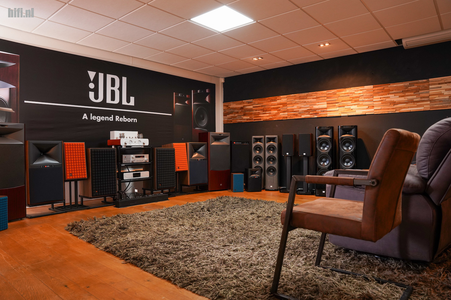 “We hebben inderdaad vijf luisterruimtes, drie beneden en twee boven, met daarin acht verschillende opstellingen. Boven hebben we twee volwaardige luisterruimtes, en één ervan is vrijwel volledig JBL nu."
