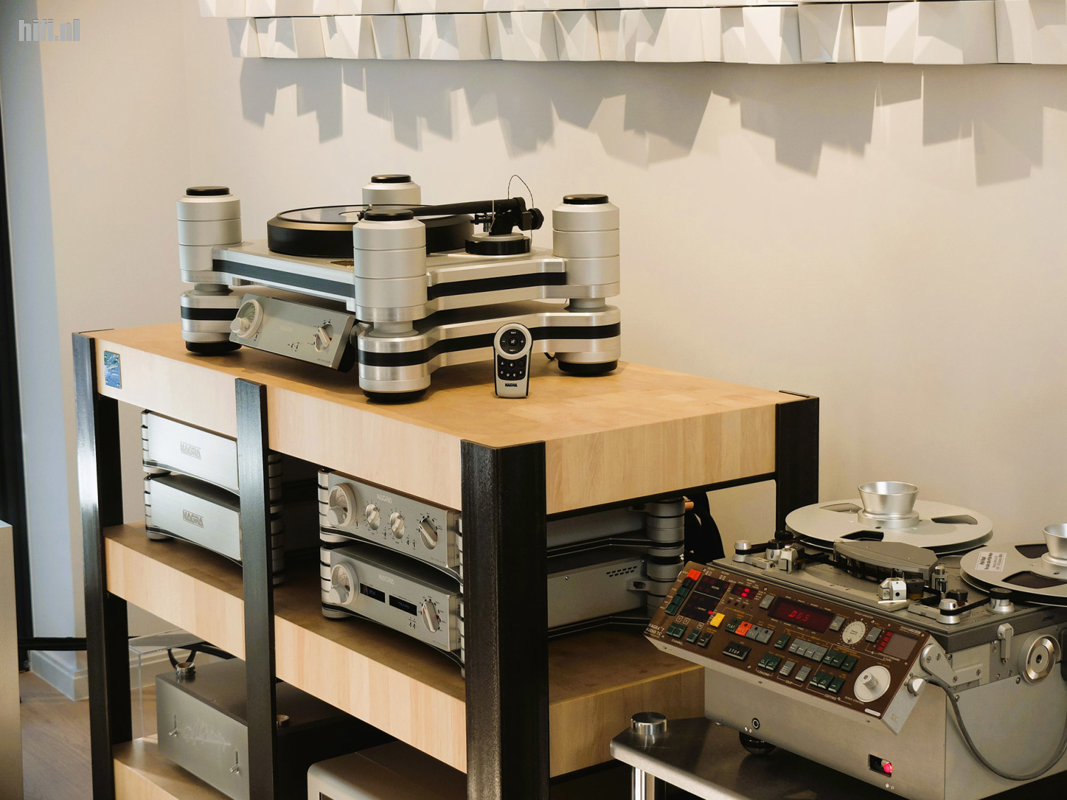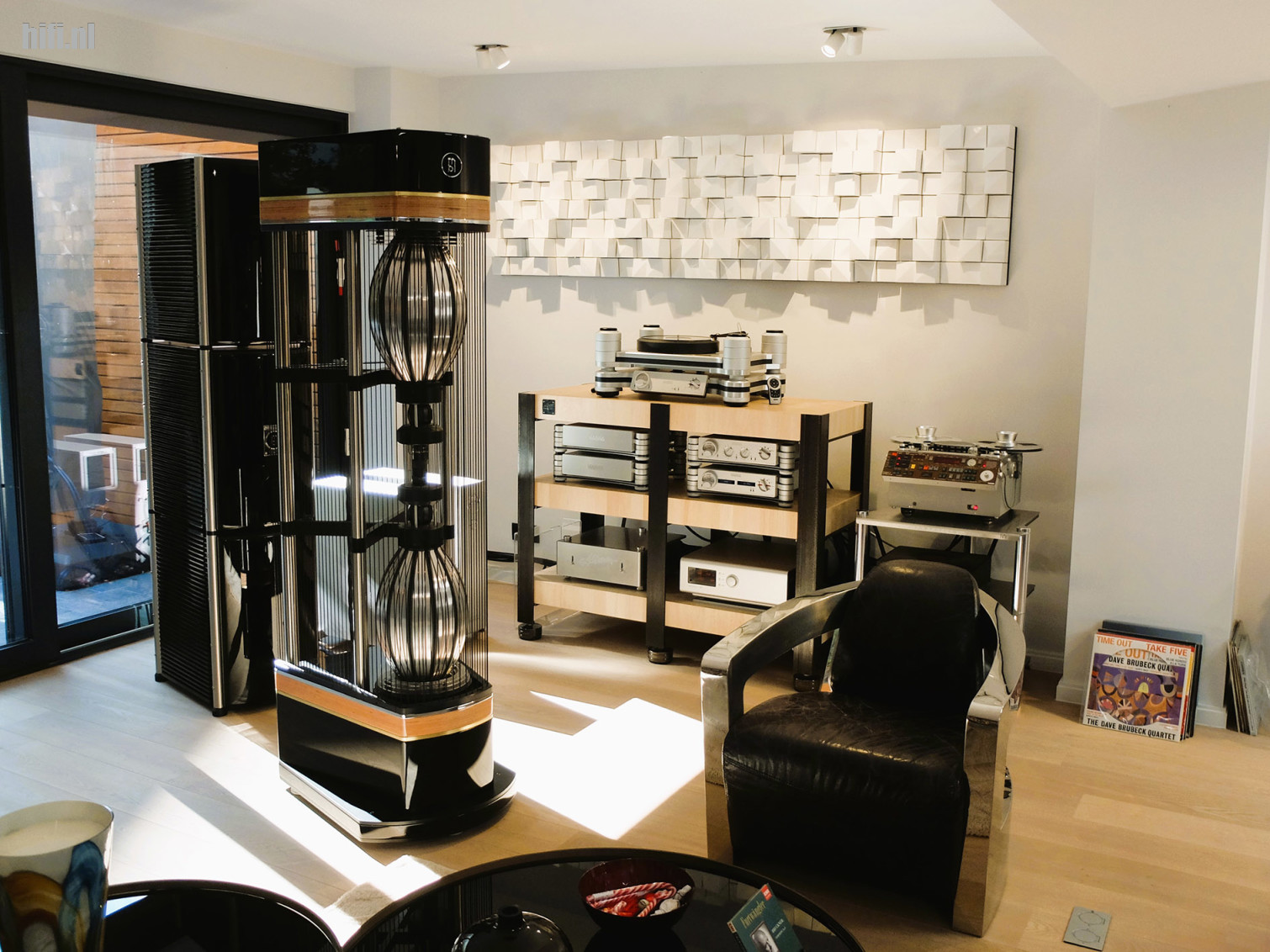De set bestaat uit het legendarische Radialstrahler 101 X-treme Mk II speakersysteem van het Duitse MBL. Een luidsprekersysteem met aparte subwoofertorens die actief op de luisterruimte afgestemd worden. Ze worden aangestuurd door 4 HD AMP Statement power amplifiers van het al even legendarische Zwitserse Nagra, een Nagra HD Preamp en een Nagra HD DAC X, elk met een aparte eigen voeding. De muziek komt van een Grimm Mu1 streamer en een Nagra Reference Anniversary turntable, de enige in de hele Benelux. De bekabeling is van AudioQuest, met in de hoofdrollen de AudioQuest Dragon stroomkabels en Thunderbird interconnects.