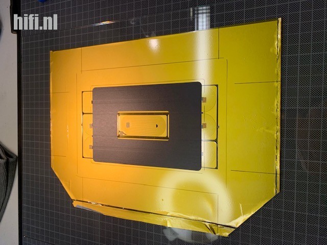 De basis van de Piega tweeter is een geëtste aluminium spoel, geplakt op een folie. Het proces wordt genoemd ‘fotochemisch etsen’. Door het gedeeltelijk belichten van een flinterdun stukje aluminium met een patroon en het daarna behandelen met chemicaliën, blijft een spoelvorm achter.