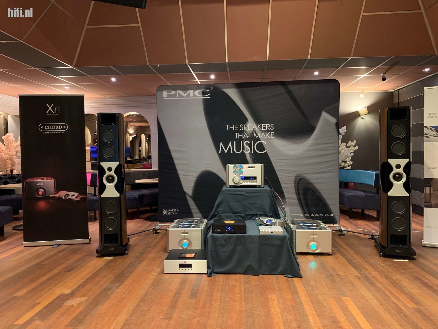 X-Fi Audio heeft als distributeur van Chord Electronics ook Furutech in het pakket en ik zie naast de paars/roze DPS4.1 netsnoeren met Fi-50 NCF connectoren ook Alpha 22 XLR interlinks en Flux luidsprekerkabels liggen en hangen. Terrasson Audio heeft als luidsprekers de PMC fact Fenestria in de zaal naast het elektronica eiland opgesteld. Saillant detail, BigBoysAudioToys is als enige dealer eigenaar van de Chord Ultima versterkers in de Benelux, versterkers met een prijskaartje van 43.000 euro voor één monoblok of de voorversterker. De Fenestria tikt de 75.000 euro per paar aan op de prijslijst. Kortom er staat voor een leuk bedrag opgesteld in Uithoorn, waar straks tijdens de demo's zo'n veertig mensen van kunnen genieten.