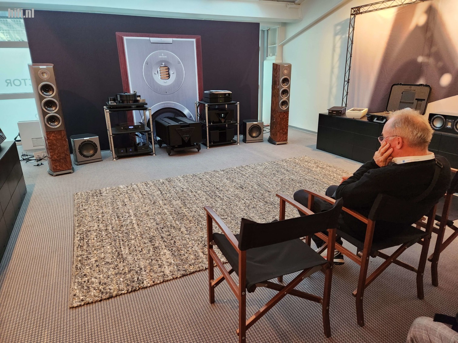 High End bezoeken zonder langs te gaan bij Kharma Audio? Dat kan natuurlijk niet. In beeld: de indrukwekkende Enigma Veyron EV-2D's.
