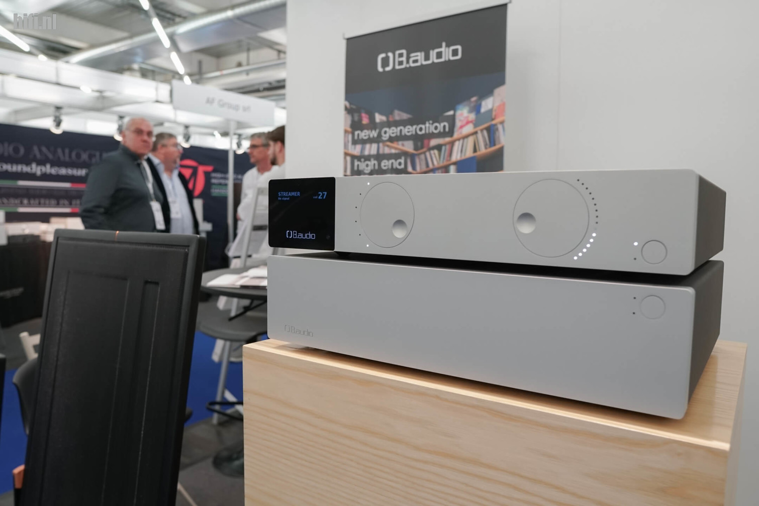 Het Franse B.audio stond op een stand met landgenoten Dyptique. Hier zijn we een bijzonder strakke combinatie van een B.dpr DAC/voorversterker met de B.AMP-eindtrap.