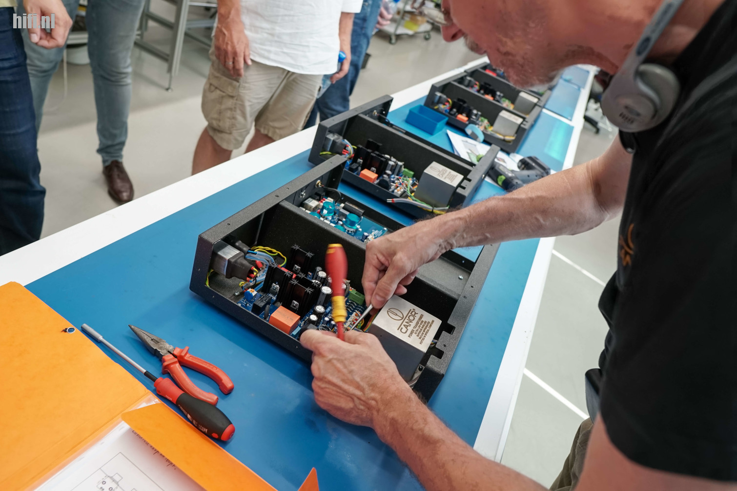 In een lab val ons oog zelfs op prototypes van een toekomstig apparaat van een ander groot hifi-merk; de naam mogen we je echter niet verklappen. Iedereen komt hier aankloppen net omdat het bedrijf een heel goede reputatie heeft qua design maar ook productie. Dat heeft ertoe geleid dat Canor enkele jaren geleden naast zijn hoofdgebouw investeerde in het openen van een tweede, veel grotere fabriek op 20 minuten rijden.