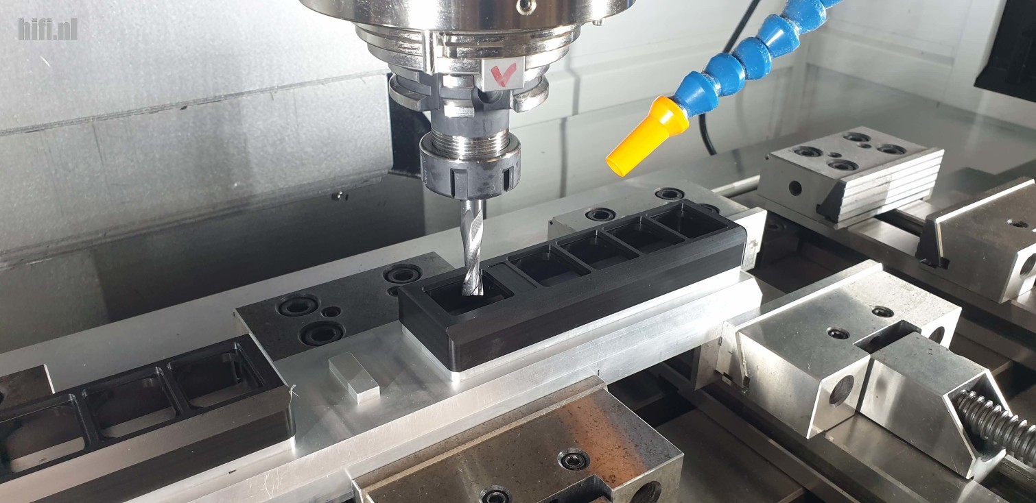 De Myni en alle andere stekkerblokken worden gemaakt uit POM-C, wat staat voor Polyacetaal Copolymeer; een sterke, harde en vormvaste kunststof. POM-C weerstaat zware stoten en – voor audio heel belangrijk – het absorbeert trillingen. Het materiaal is bovendien mechanisch goed te bewerken en heeft een chemische bestendigheid tegen oliën en brandstoffen. Een geringe vochtopname en de uitstekende mechanische eigenschappen garanderen slijtvaste producten die maatvast zijn.