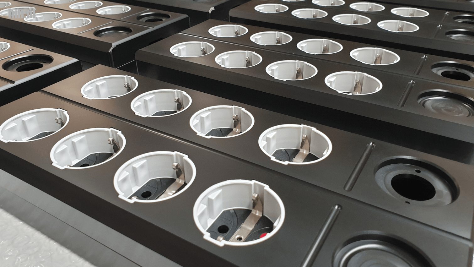 Essential Audio Tools heeft POM-C ook omarmd omdat het heel netjes te bewerken is op een CNC-machine, het is milieuvriendelijk, levert geen extra milieubelasting op tijdens de bewerking en ziet er prachtig uit als het eindproduct klaar is. Essential Audio Tools noemt de verdeelblokken Mains Multipliers. De types 5 en 7 zijn behalve het aantal (gefilterde) outlets gelijk aan elkaar. Een aantal sockets heeft een HF-filter, alle uitgangen zijn beschermd tegen overspanning en de bedrading is uitgevoerd in stervorm.