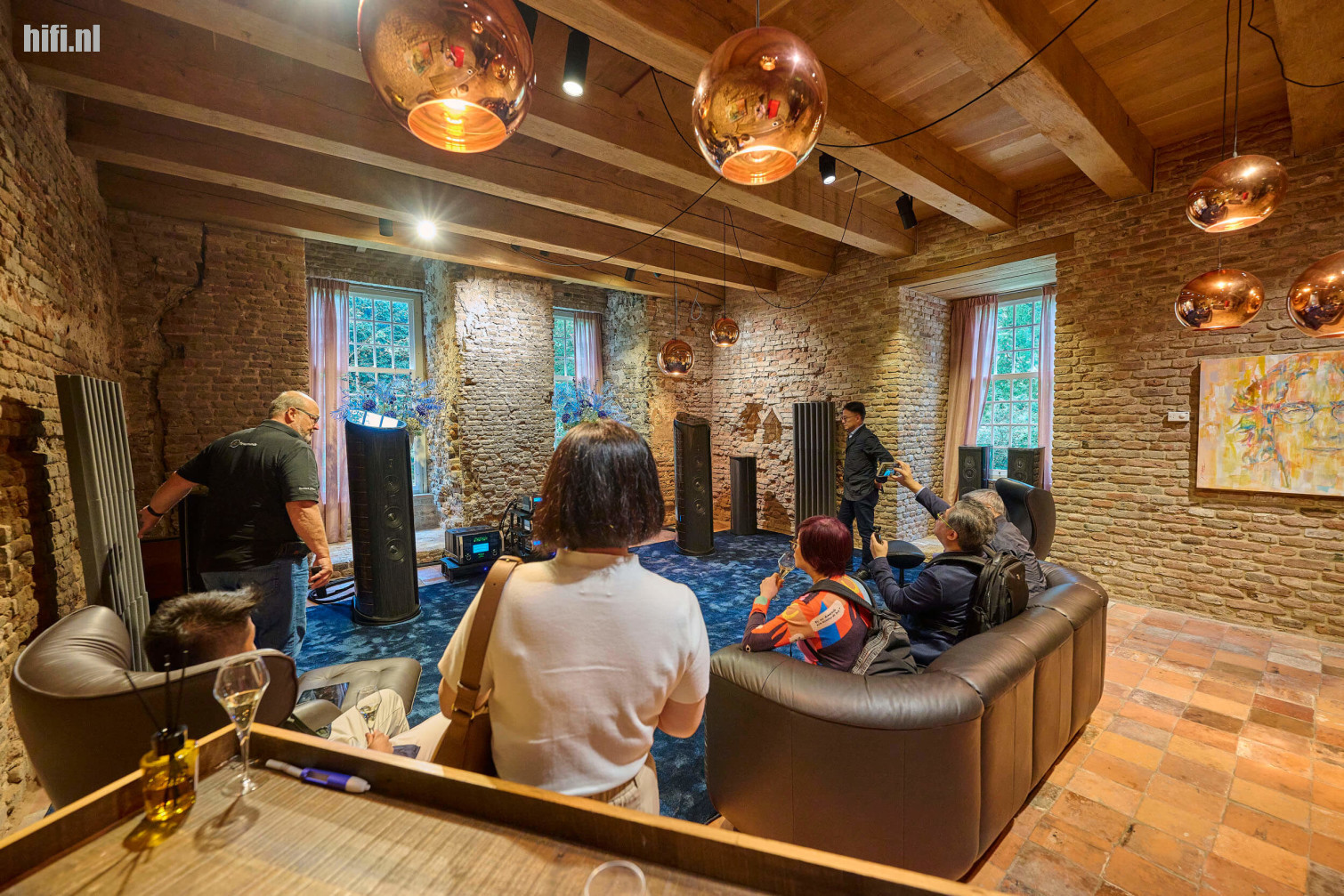 "Kijk, een Sonus faber Il Cremonese of KEF Blade vond je in de winkel óók al. Maar je hoeft zometeen maar een eerste rondje binnen te maken om te ervaren dat dat hier toch nét even anders staat." Of, in de woorden van Dan Pidgeon toen hij even later aan de beurt was voor een welkomstwoordje: "Completely unique setups you won't find anywhere else in the world. An elevated luxury experience."