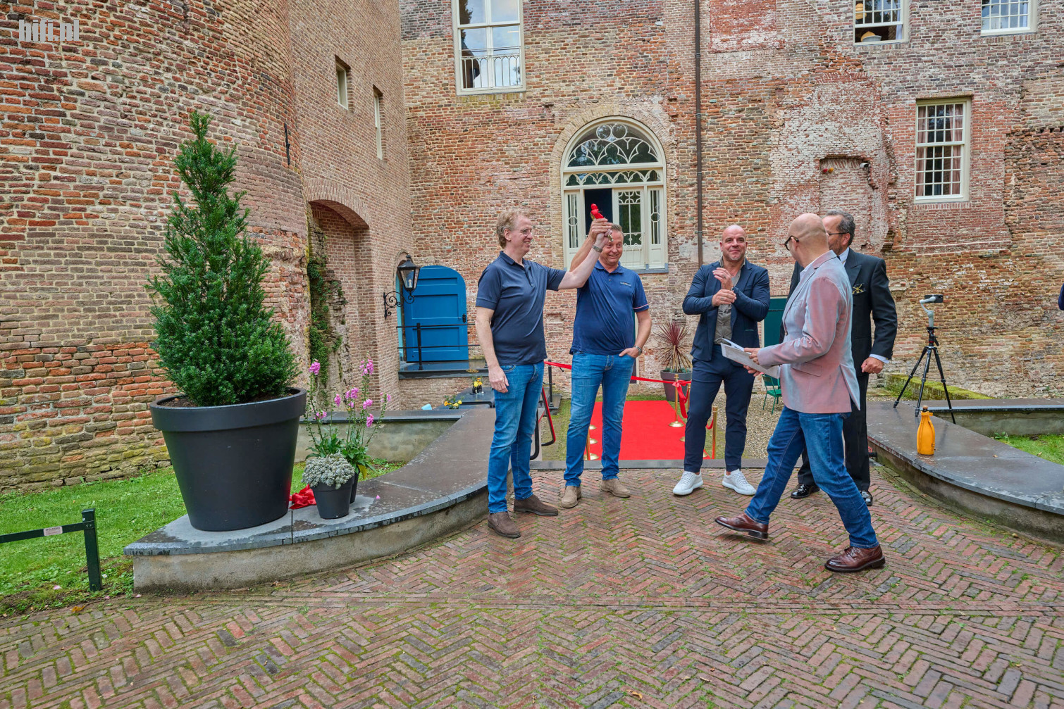 Ronnie en Peter nemen met gepaste trots de kasteelsleutel in ontvangst