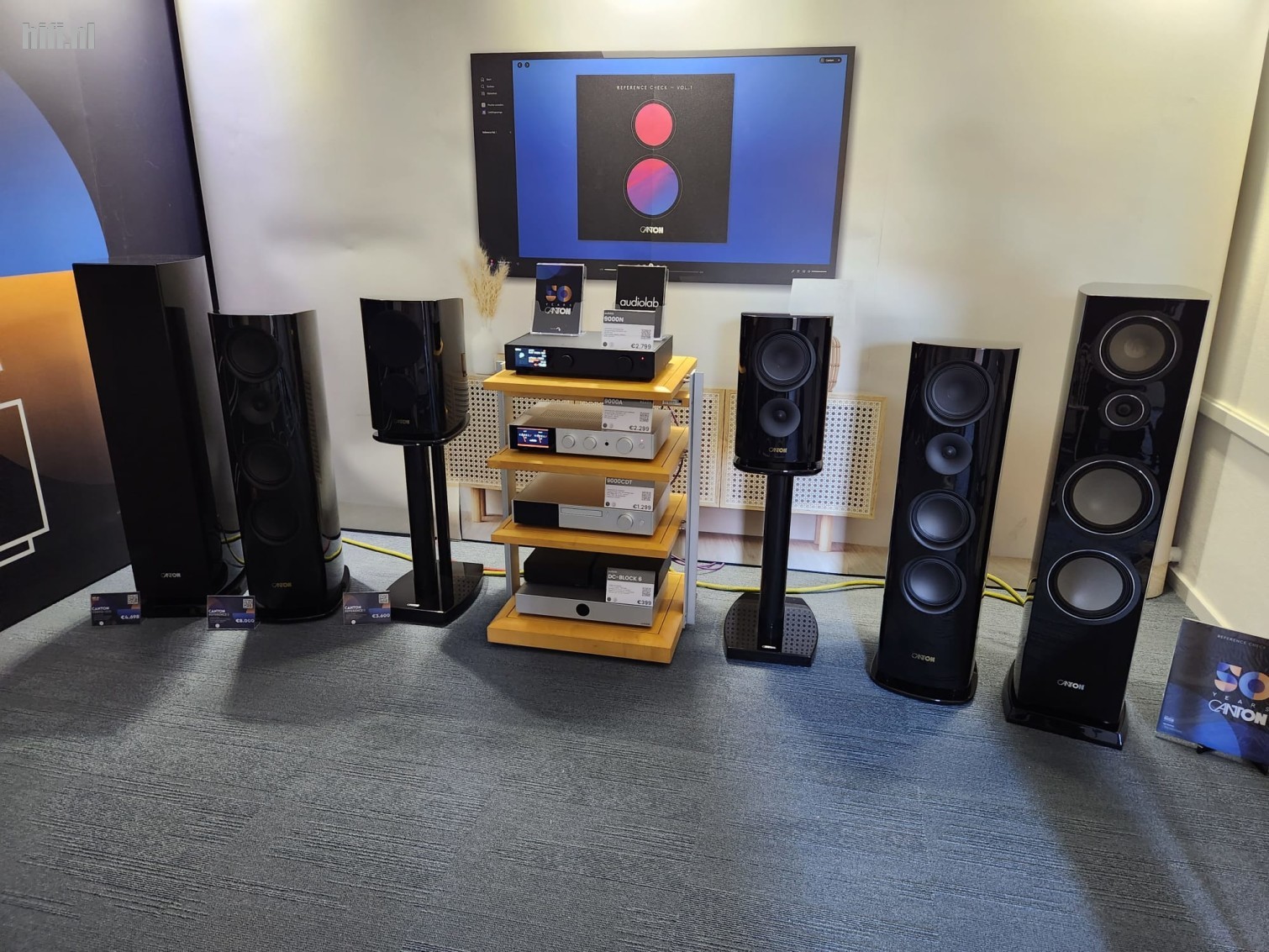 In de Canton-kamer vind je een paar primeurs, want in de Limburg foyer is een waar plein van audiobeleving opgetrokken, volledig in het teken van de nieuwste modellen van Audiolab, Canton, Pro-Ject, Wharfedale & Pinell. De fonkelnieuwe 9 en 7 uit de Reference-familie voorgesteld op High End München, bijvoorbeeld.