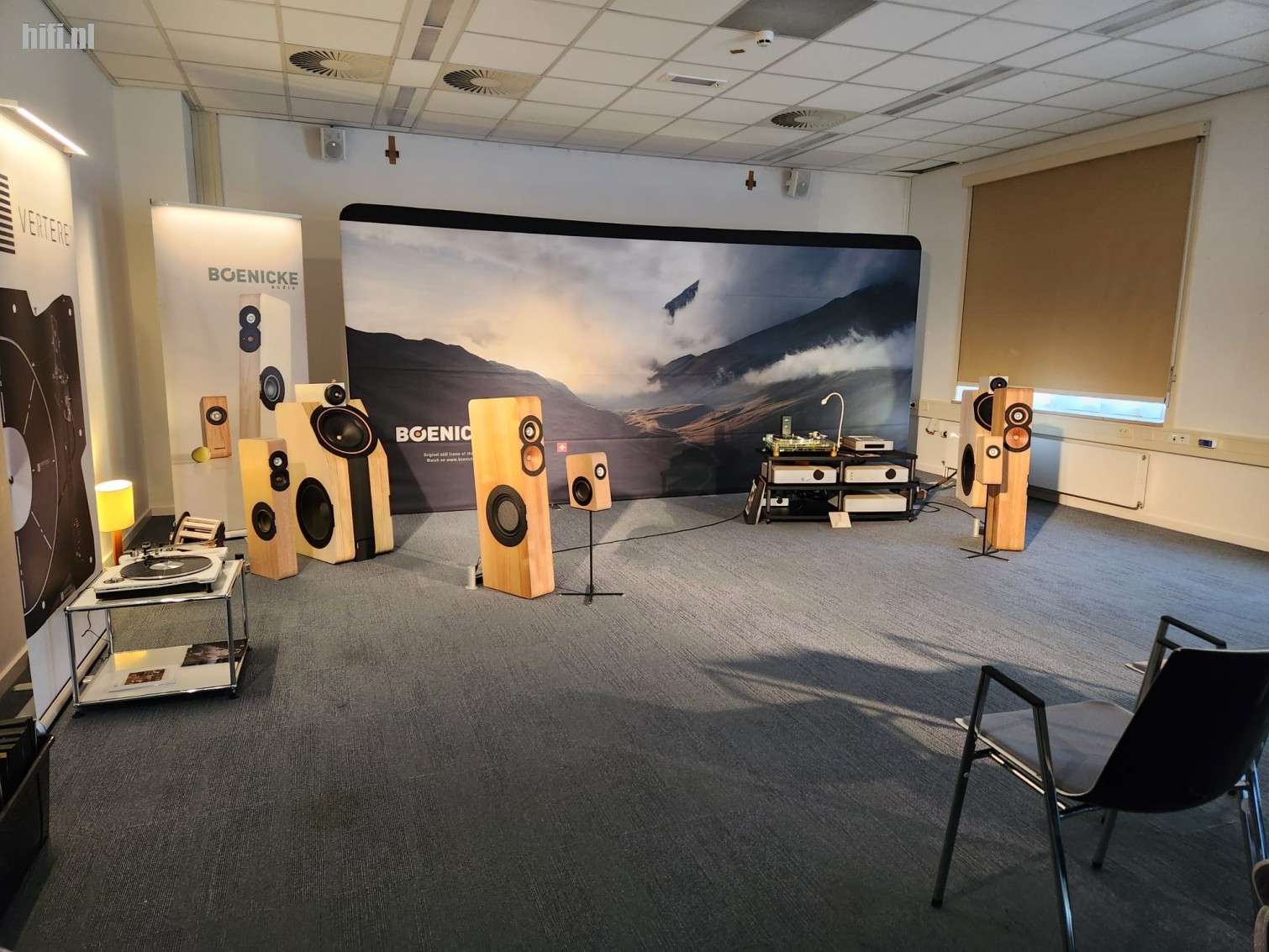 Het blijft ongelofelijk hoe Boenicke uit een bescheiden formaat een immens systeem tovert. Mag wat zachter spelen, dan zou het nog meer imponeren, maar het is evenwel een verfijnde sound in een kamer gevuld met prachtige kunstwerken slash speakers uit massief hout. Die Vertere-draaitafel mag er ook zijn.
