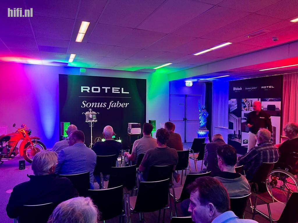 Zoals ieder jaar is het weer lastig om de ruimte van Fine Sounds Benelux te missen op Dutch Audio Event. Direct herkenbaar aan kleur en stijl, maar ook aan de toon/tonen van klinkende combinaties van McIntosh en Sonus faber. En dan is er ook nog een primeur, want FSB heeft het iconische merk Rotel verwelkomd in hun stal, en DAE is de eerste grote publieksshow waar dat wereldkundig wordt gemaakt. Rotel is natuurlijk bekend vanwege haar modellen die een geweldige introductie in de liefhebberij van de high-end audio kunnen zijn, én, zeker in geval van Michi, een respectvol eindstation.