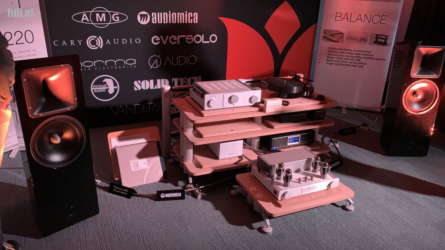 In Veldhoven zijn de mannen uit Friesland er dus weer bij, met niet alleen de nieuwste producten uit de hoge hoed van James Soh, maar ook aandacht voor een nieuwe aanwinst in het pakket: Montaudio, een breed pakket aan interlinks, speakerkabels, usb- en ethernetkabels maar ook prachtige hifi-racks, afstelbare trillingsdempers en unieke ground reference units uit Nieuw-Zeeland.
