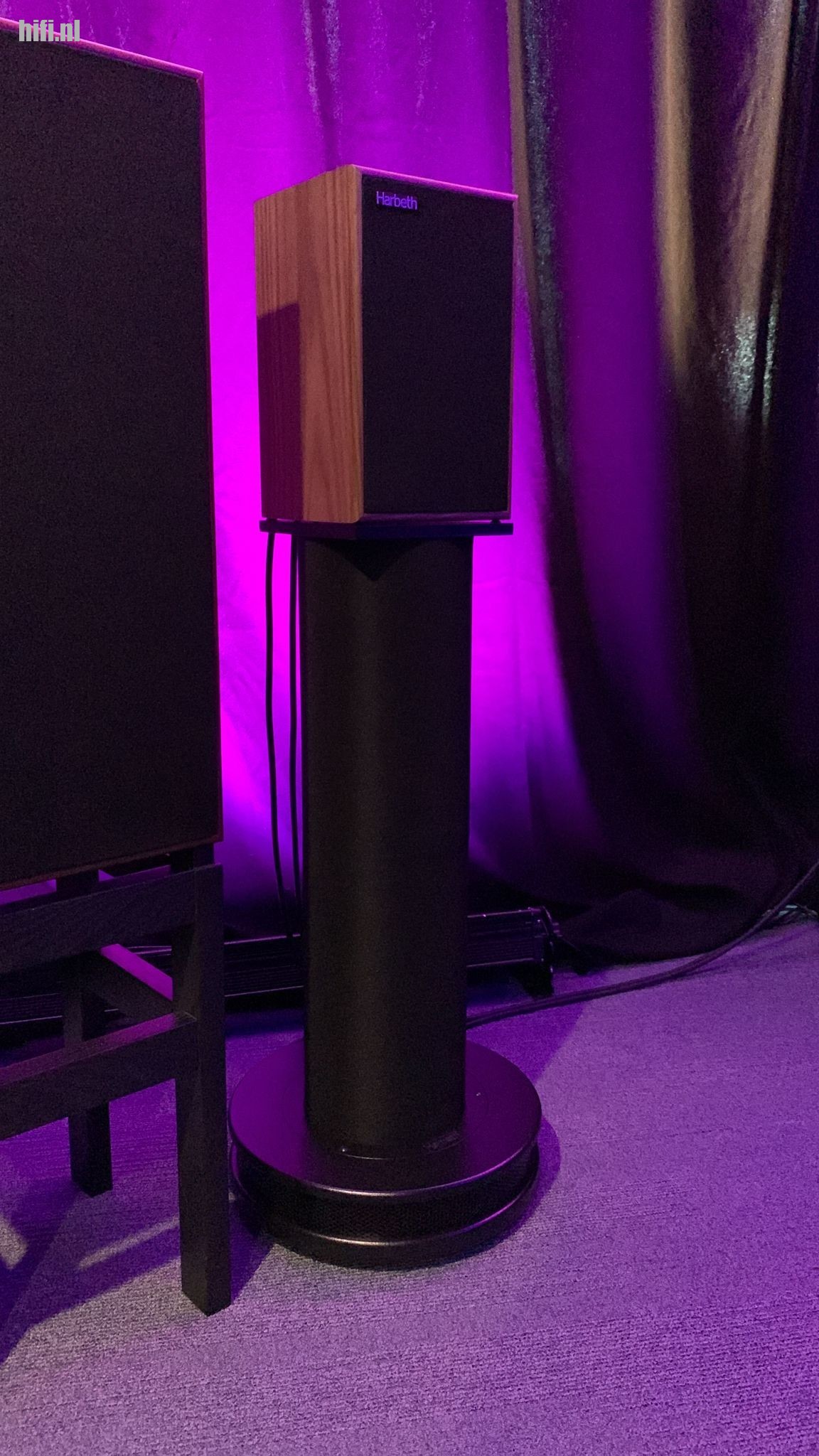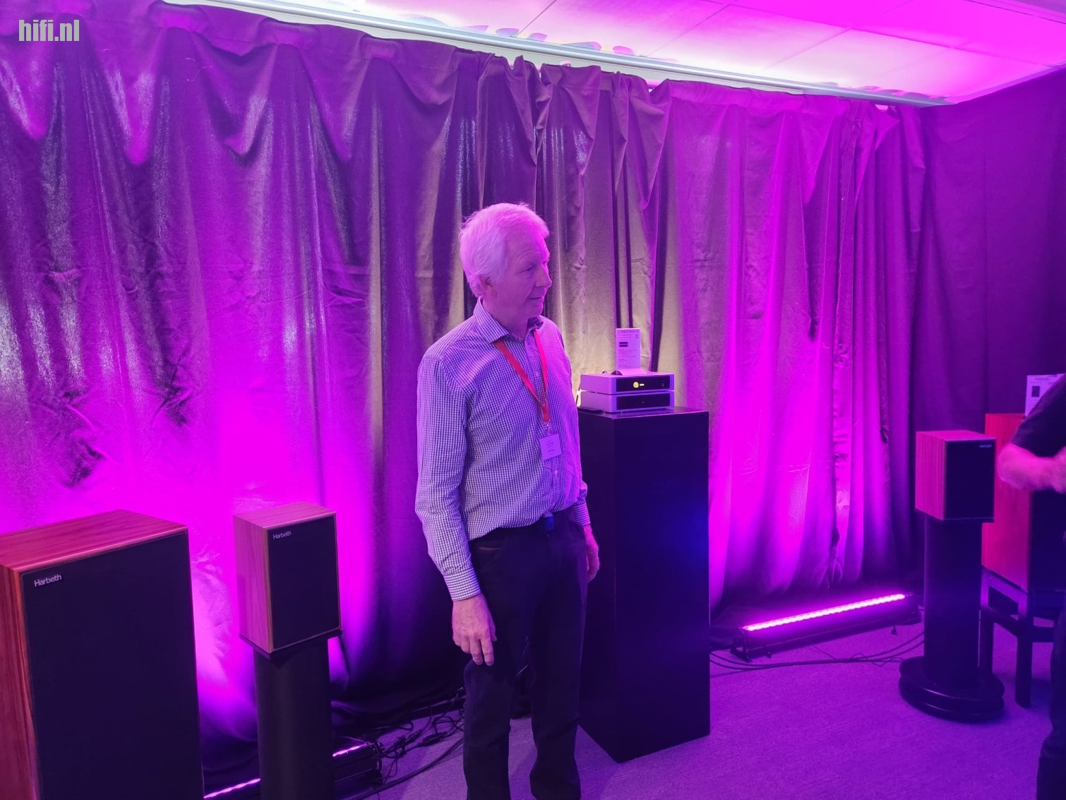 En bij Harbeth een (wereld)première voor een subwoofer voor de P3 ESR en andere monitoren: geïntegreerd in de stand zodat ze nooit opvallen, en onthuld door Alan Shaw himself.