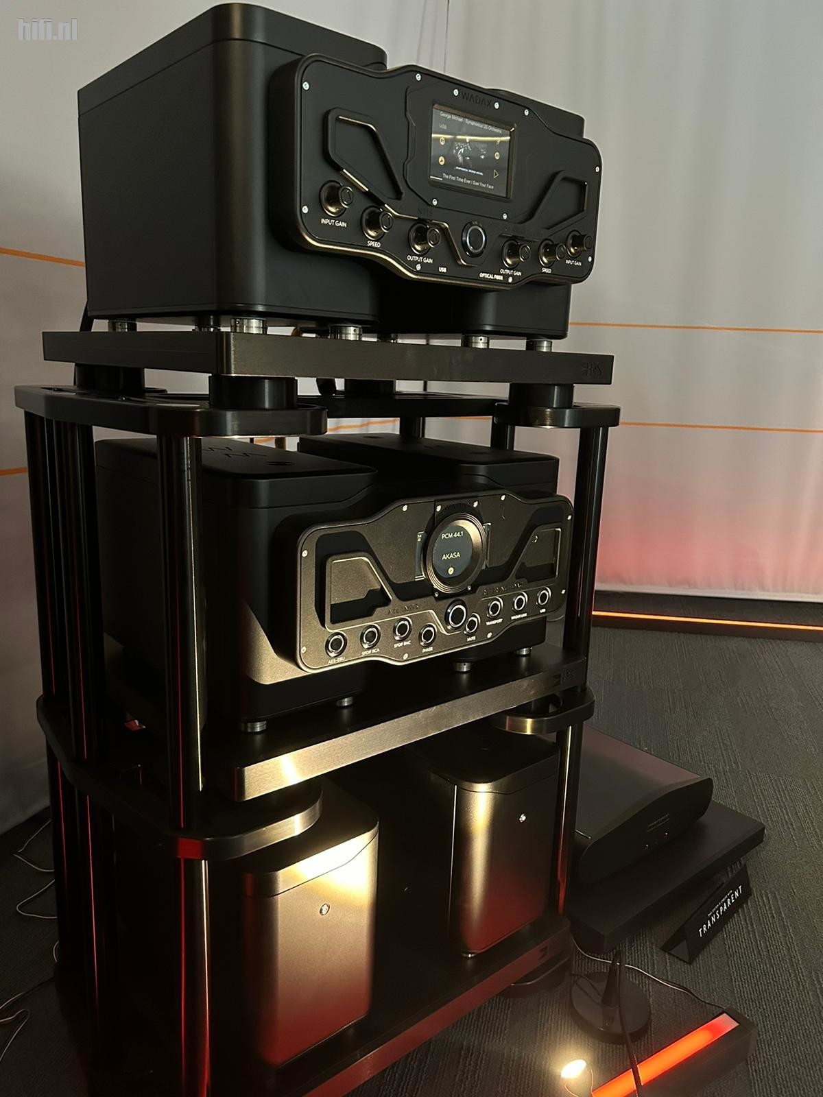 Esoteric bij de nieuwe distributeur. Hand in hand met PMC fact Fenestria en Halco. Franse chandons doen het hart smelten. Uiteraard helpt het dat we ook hier weer een stukje Holland glorie hebben, met in het midden van de presentatie de MU2 van Grimm Audio. De MU2 is een zusterproduct van, je raadt het al, de eerdere MU1 (lees ook onze onze review van de MU1), met dezelfde functionaliteit met geïntegreerde Roon Labs Core en End Point, maar de MU2 heeft analoge in plaats van digitale uitgangen. De ingebouwde DA-converter, genaamd Major DAC, heeft een baanbrekend discreet ontwerp dat optimaal gebruik maakt van de eigen uiterst nauwkeurige FPGA-bord en klokoscillator met ultralage jitter. Na deze DAC zorgt een op relais gebaseerde analoge volumeregeling en de aanwezigheid van analoge ingangen ervoor dat de MU2 de echte 'hub' wordt van elk klassiek hifisysteem voor zowel digitale als analoge bronnen.