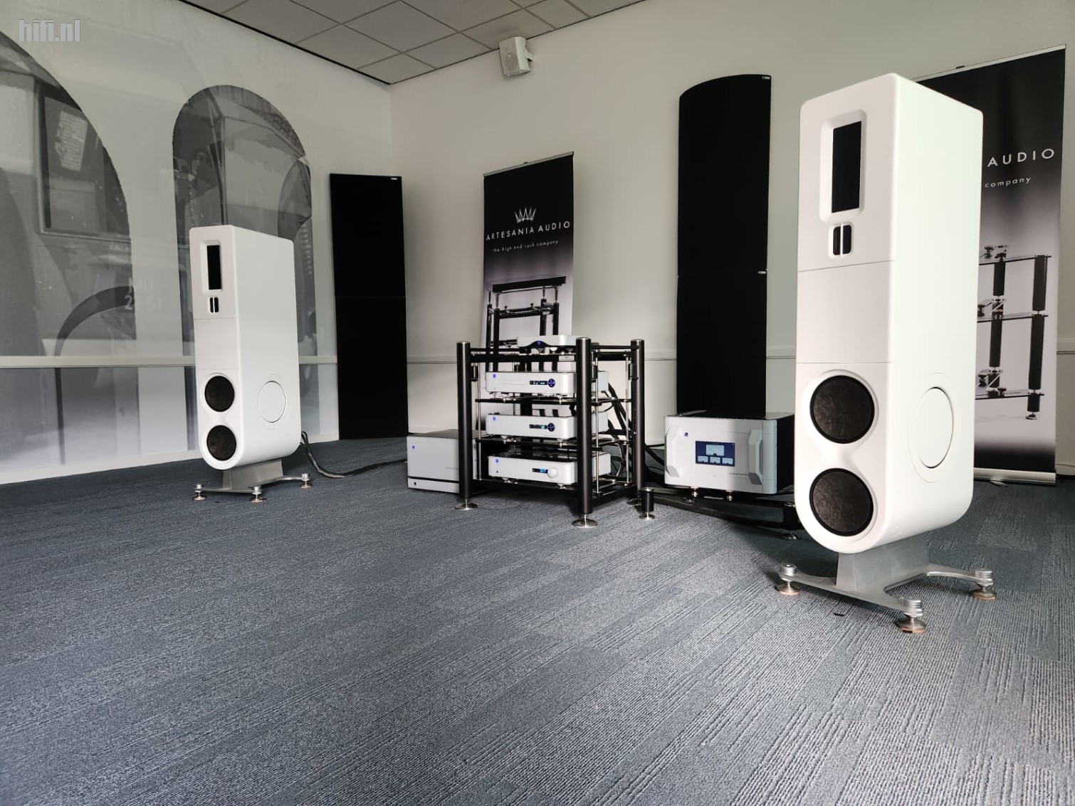 Toch terug naar de letter A. Bij Aequo Audio opnieuw een privédemo – dat krijg je als je nét voor de bezoekers uit kunt lopen – met een magistraal spelende hybride Stilla. Het actief laag kan met twee draaiknoppen worden aangepast aan de ruimte, wat precies ook even gedemonstreerd werd. De lage tonen van Stapletons Death Row klinken massief, snaarstrak en elk detail in de aanslag van de basgitaar komt naar voren. Een set van topniveau.