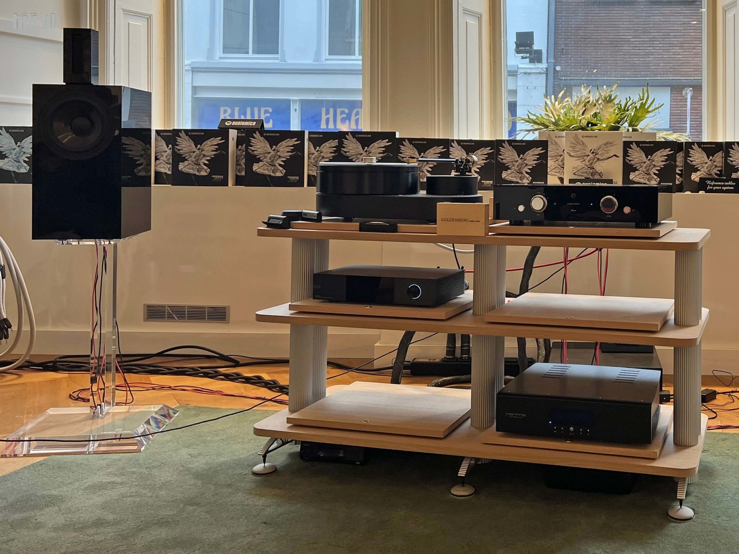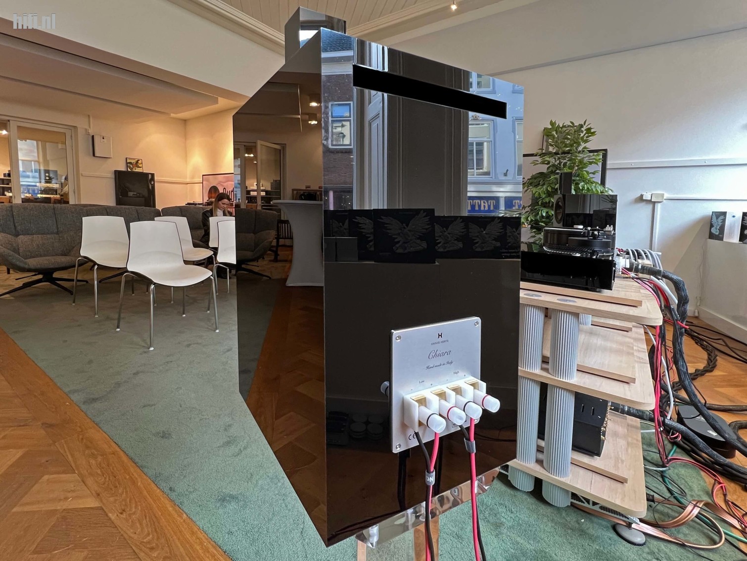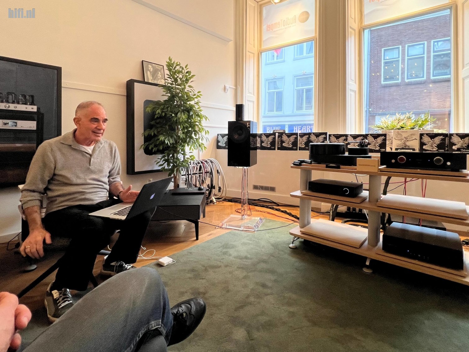 Vervolgens plaatst hij zijn laptop – onder enig protest van Cor van Empel, mede-eigenaar van Audio Tempel die deze set zojuist heeft aangeschaft – op de hoogglans Maria 800 zodat we met eigen ogen en oren de werking van C Wave kunnen beleven met geverifieerde garbage content. Ook bij deze YouTube track ervaren we een identiek belevingsniveau en zijn unaniem enthousiast over datgene we zojuist hebben ervaren.