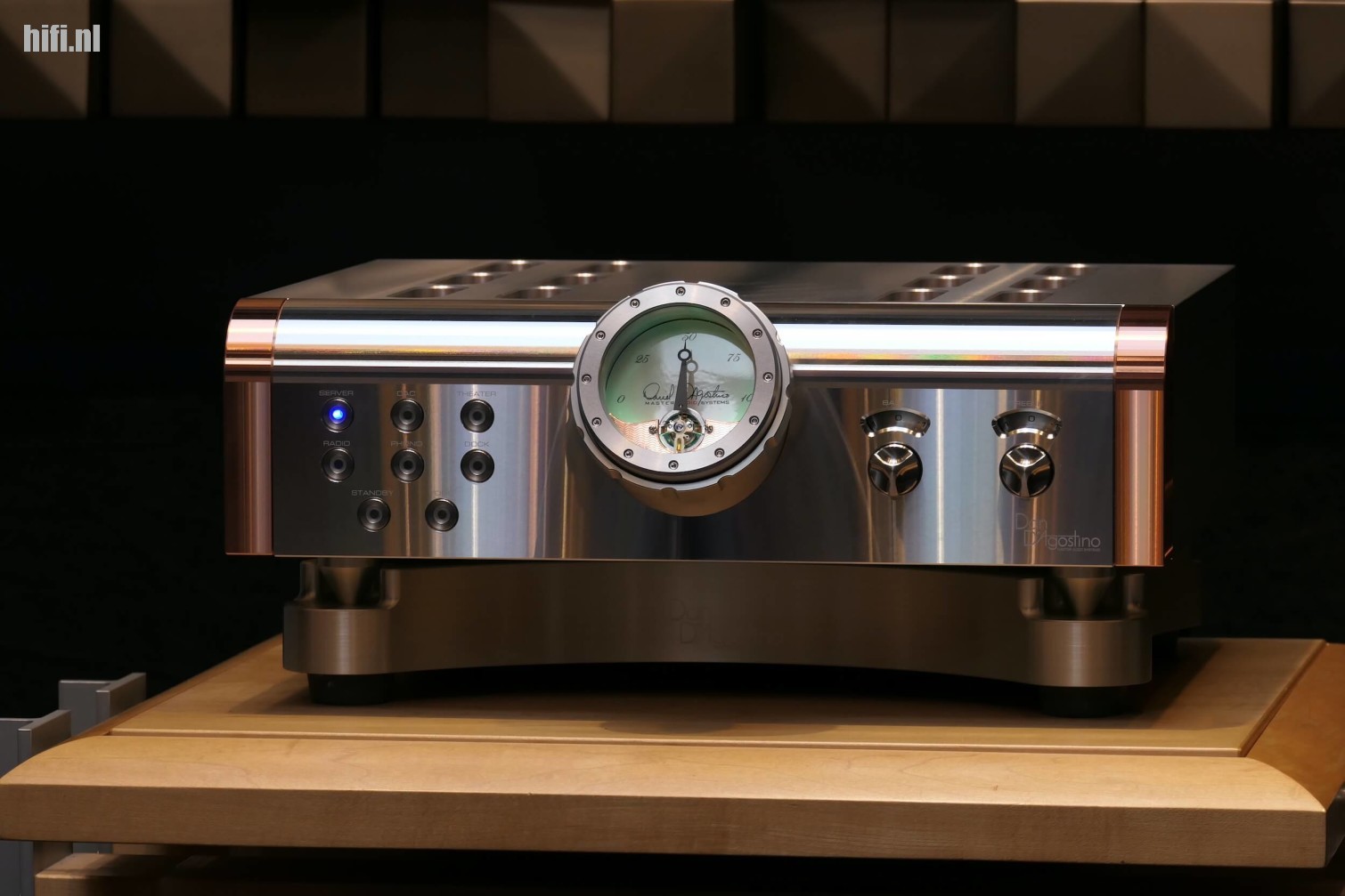 “Wat meteen ook de grootste troef is van Dan D’Agostino”, gaat Bill verder. “Om die nodige kracht te leveren ontwikkelde Dan D’Agostino de ‘Super Rails’, een technologie die onze versterkers in staat stelt om tijdens piekbelastingen als een soort turbocharger extra stroom te leveren. Versterkers die zoveel kracht leveren, ontwikkelen natuurlijk ook veel warmte. Een typische eigenschap van pure klasse-A versterkers. Die warmte moet ook afgevoerd worden. Vandaar de massief koperen elementen in deze versterkers. Of dacht je dat dat koper alleen maar deel uitmaakt van het design?”, zegt hij lachend. “Een kostelijke en gecompliceerde aangelegenheid. Koper is niet alleen duur, de bewerking ervan ook – en gecompliceerd.”