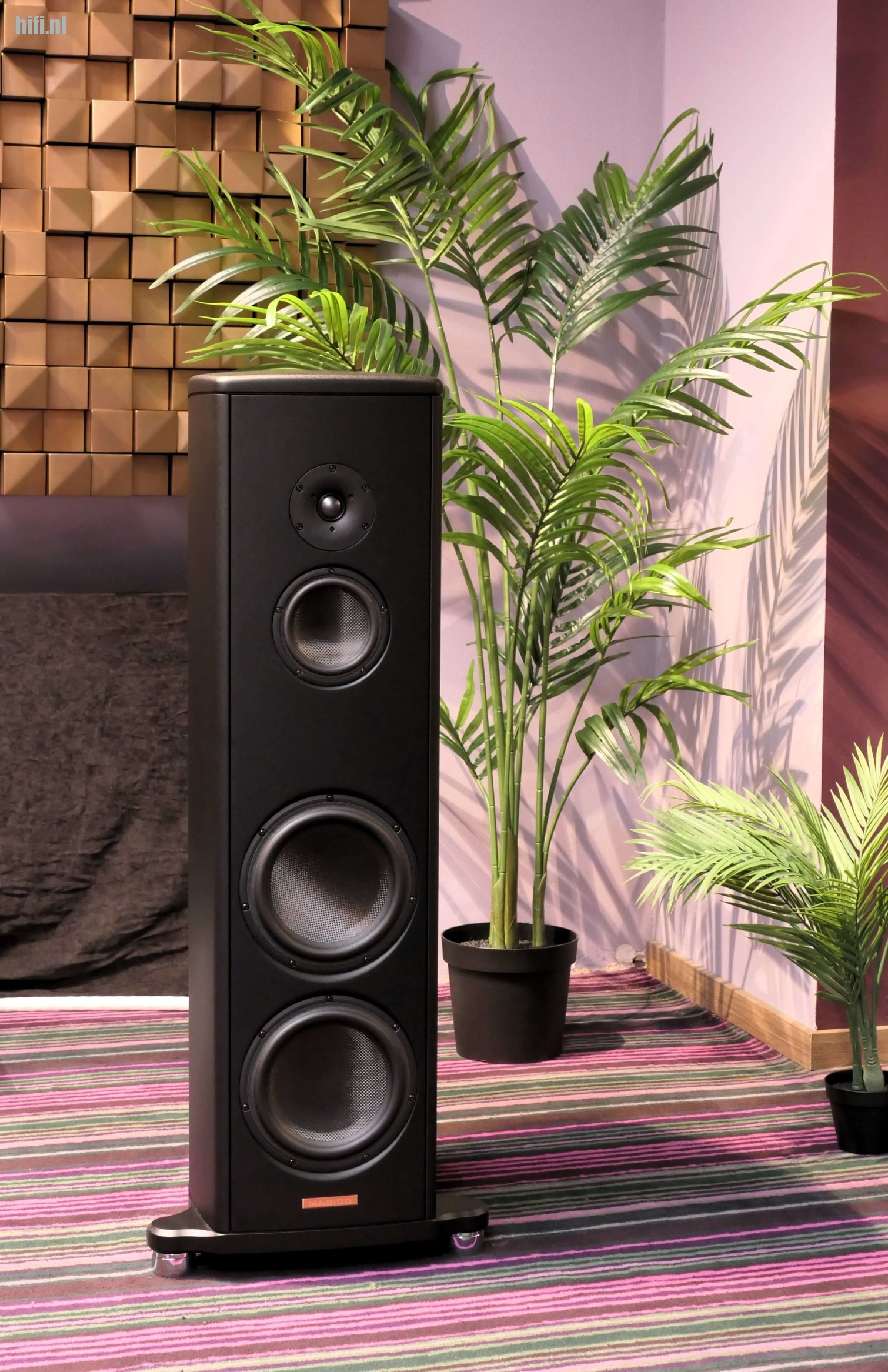 Meer bepaald, de Magico M7 speaker, het kleinere zusje van de M9, het absolute vlaggenschip van Magico, zoals Guy Boselli van distributeur Sound & Colors het omschreef. Een man die ons met een vurige passie alles vertelde wat we wilden weten over deze schitterende speaker. Zoals het feit dat Alon Wolf, de ontwerper van Magico, een gloeiende hekel heeft aan MDF. Prima materiaal om meubels te maken maar ongeschikt voor luidsprekerbehuizingen, aldus Wolf.