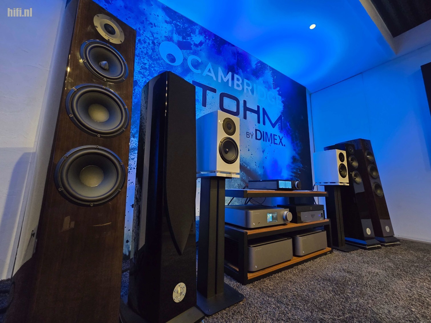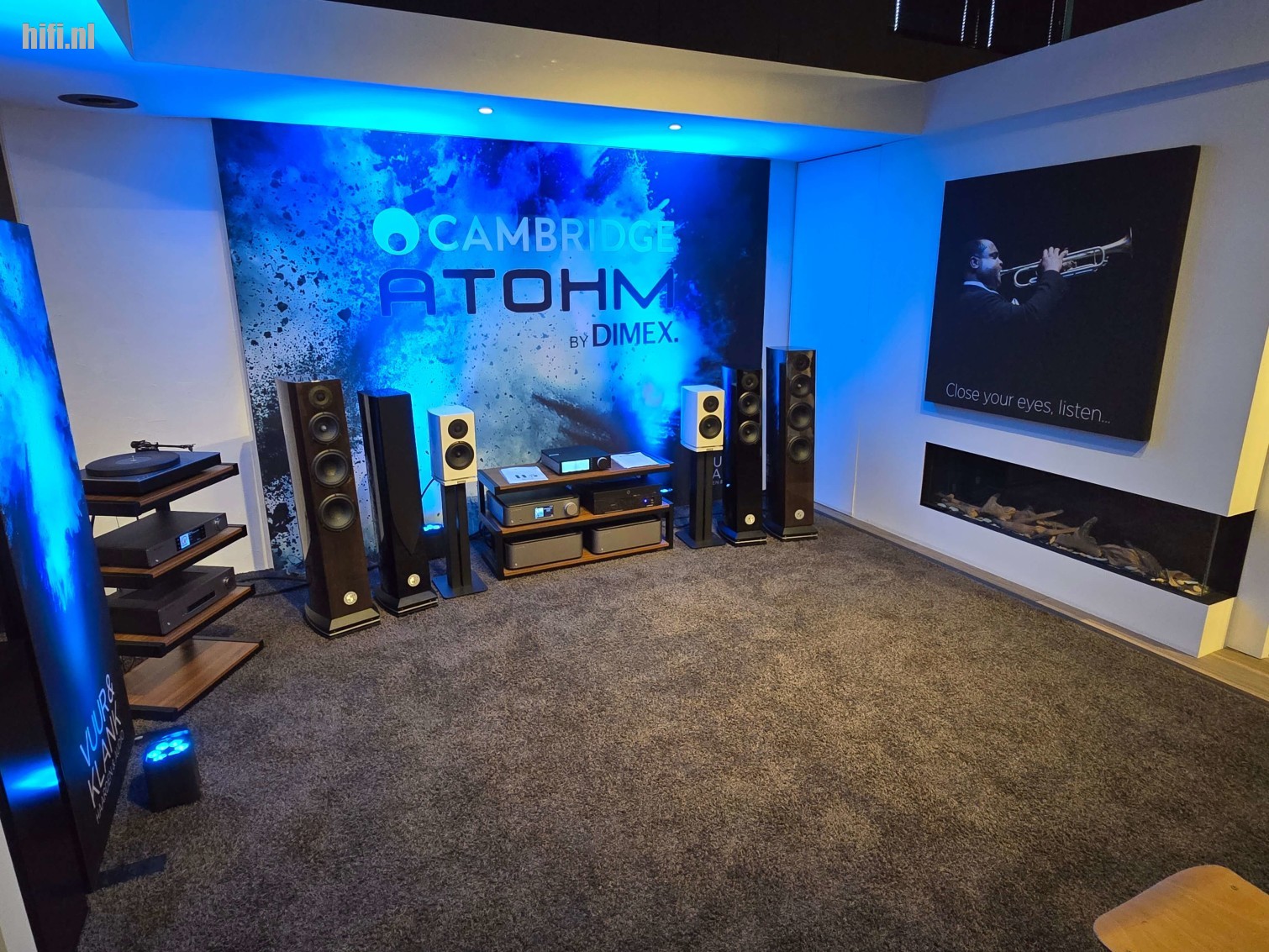 Van Dimex, dat aardig wat mooie hifi in huis heeft, is dus gekozen voor Cambridge en Atohm. Laatstgenoemde is een Frans audiomerk dat actief is sinds 2000 en op eigen bodem niet alleen de luidsprekerkasten, maar ook de drivers en de filters maakt, en alles in eigen huis assembleert.