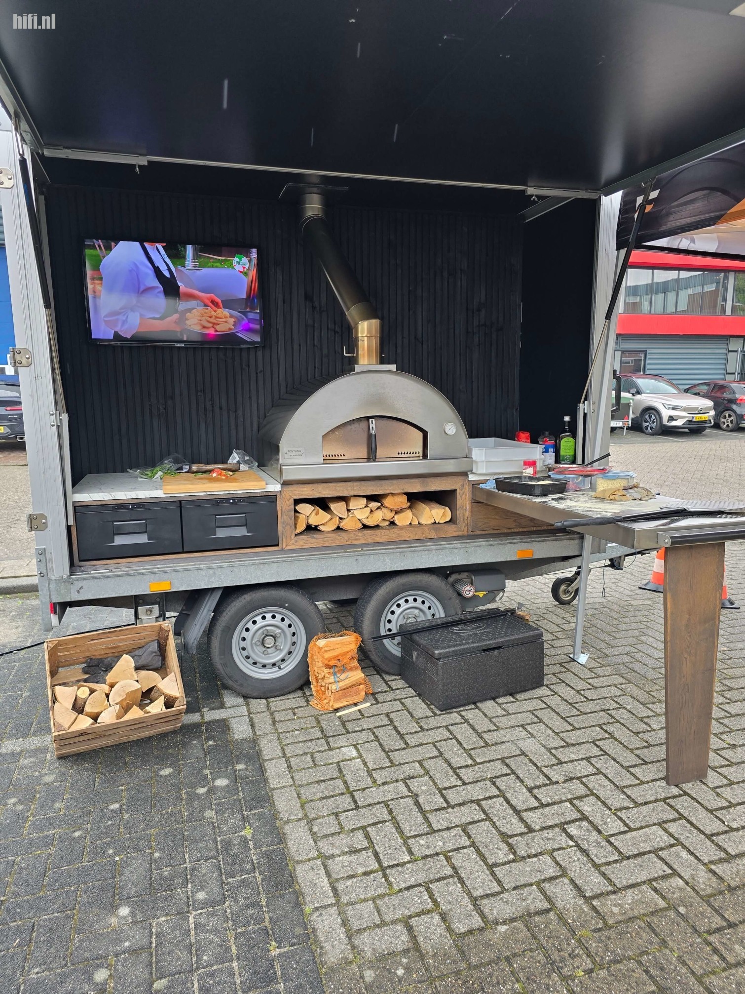 Jeroen: “Dat zijn onder meer Buitenrijck Outdoor Living, die zitten hier twee deuren verder en zijn vandaag ook aangesloten. Je kunt er terecht voor luxe overkappingen, zonweringen en complete buitenkeukens, hier zijn ze aanwezig met hun barbecues. Ernaast staat Rebelcook met hun trailer met oven voor fantastische Italiaanse pizza’s – op zichzelf al reden om dit weekend langs te komen!”