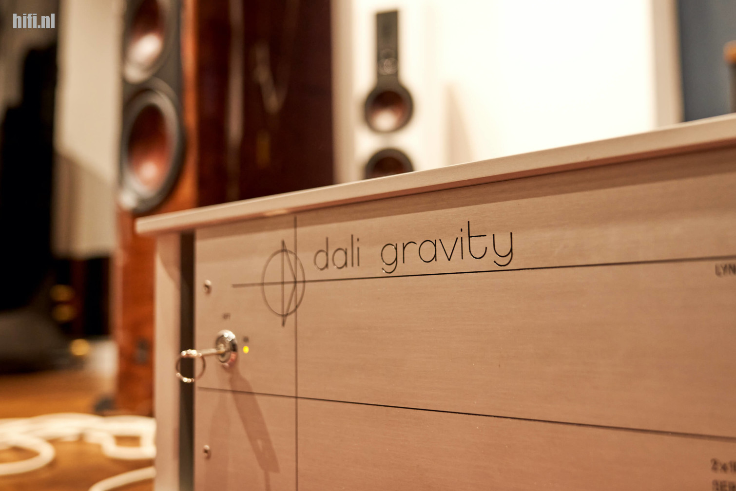 Voor de luistersessies in Nørager had het DALI-team iets bijzonders bovengehaald. Niet één, maar twee immense DALI Gravity-versterkers. Over hifi-geschiedenis gesproken! Deze 100-kg wegende klasse A-monsters die in een heel beperkte oplage werden gebouwd om de legendarische Megaline-speakers aan te sturen trekken continu 2,2 kilowatts uit de muur, of ze nu muziek spelen of niet. Meteen weten we waarom DALI zoveel zonnepanelen gemonteerd heeft op z’n fabrieksgebouwen. “Ze staan al even op te warmen. Toen we daarnet even snel wilden stofzuigen vooraleer de demo begon, sprong de zekering”, grapt Krestian nog.