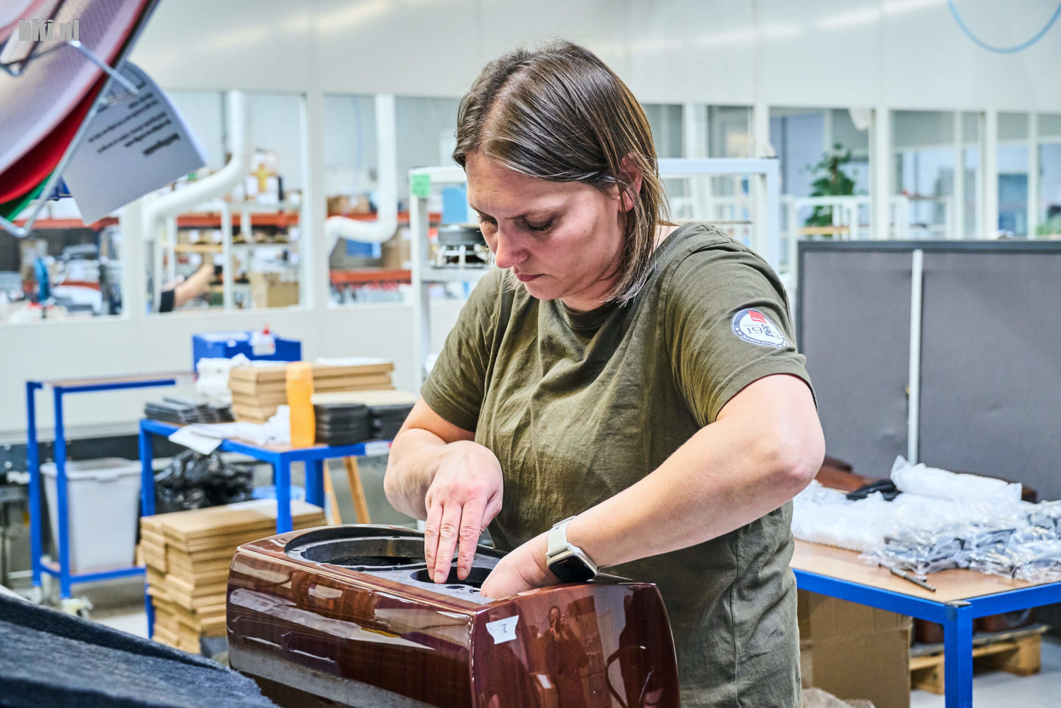 Maar toch, ondanks de grote machines en die ene robotinstallatie blijft speakers bouwen nog altijd handwerk. Vakmanschap – of liever, gezien de samenstelling van het personeelsbestand: vakvrouwschap – is nog een designprincipe van het merk.