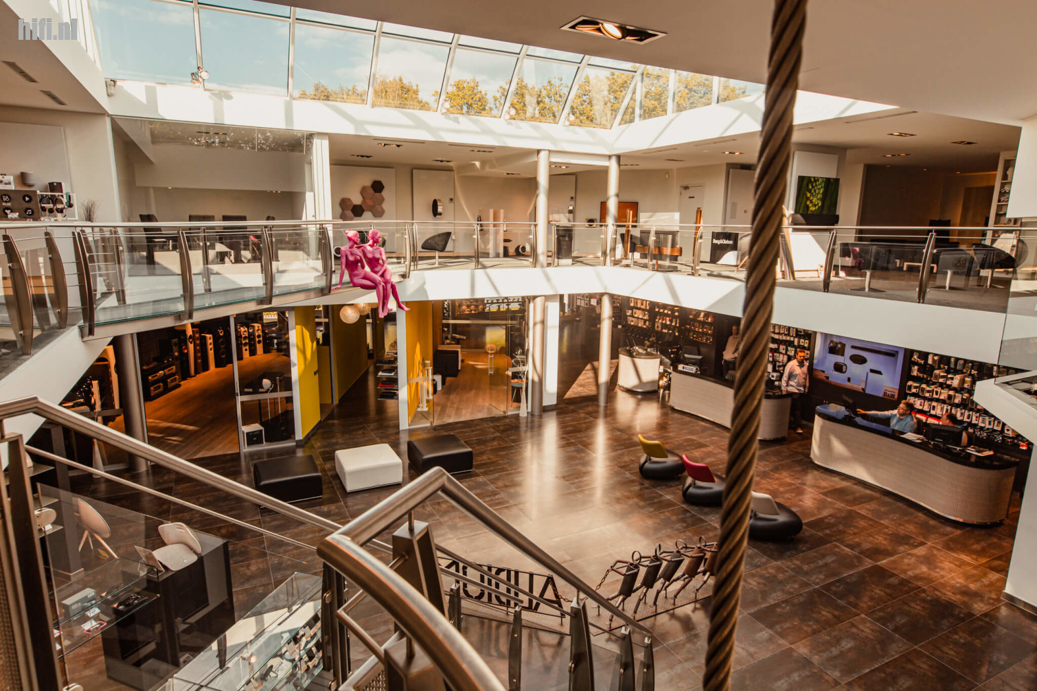 Wie het fraaie pand van Audiomix in Begijnendijk van buiten aanschouwt zal misschien eerder denken te maken te hebben met een museum voor moderne kunst dan met een audiovisuele speciaalzaak. Eenmaal binnen wordt deze uitstraling bevestigd door de ruime ontvangsthal, het immense overzicht en de ruimtelijkheid die je ervaart. Tel hier ook nog eens de grote aandacht voor detail en afwerking van de verschillende ruimtes bij en het is duidelijk dat deze zaak veel meer is dan zomaar de volgende hifi-winkel.