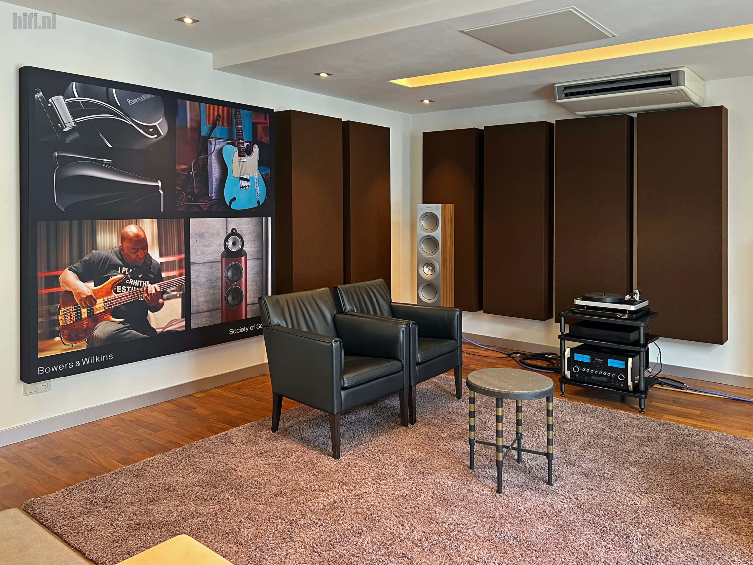 Is een luisterruimte op het eerste gezicht enkel esthetisch aangepakt, dan blijken daar toch legio factoren achter te zitten die invloed hebben gehad op het nieuwe uiterlijk – van dimmende verlichting en verduistering van de ruimte als de home cinema aangezet wordt tot zeer uitgebreide akoestische maatregelen.