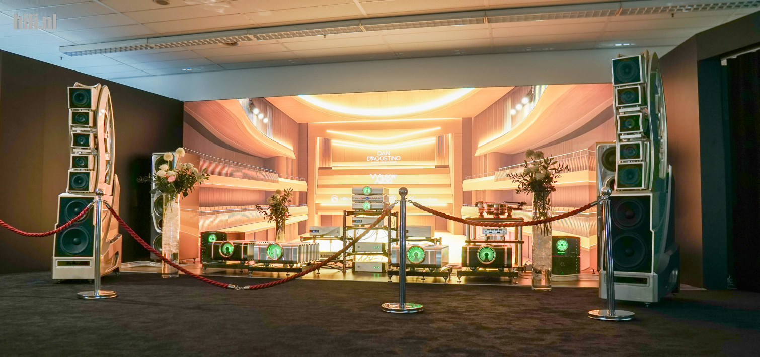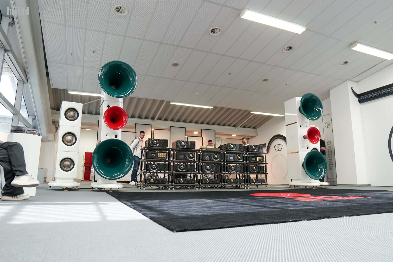 Ook benieuwd of er in de Weense-evenementhal plaats zal zijn voor het absurd grote toetersysteem van het Chinese merk ESD Acoustic. In 2023 had het bedrijf een gigantisch hoornsysteem opgesteld dat je zelfs met de beste wil van de wereld niet mooi kon noemen. Vorig jaar was de Super Dragon-opstelling al heel wat aangenamer om te zien en te beluisteren. Deze keer had ESD de Super Phoenix mee, dat bestond uit twintig componenten (vooral versterkers en voedingen) en twee grote witte torens. Met daarop twee grote rode hoorns met in het midden een donkergroene, met naast elk een kleinere witte toren met dynamische drivers.