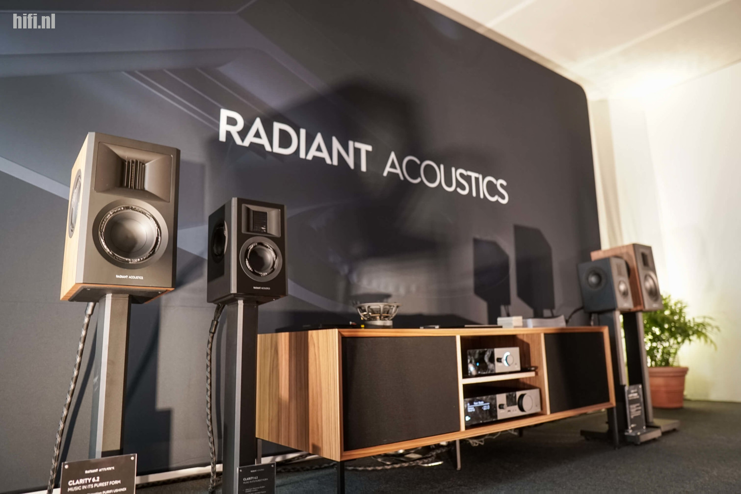 Dat laatste lijkt geen probleem bij Radiant Acoustics, een jong project van Peter Lyngdorf en het jonge team achter Nordic HiFi. Vorig jaar maakte het een sterke impressie met de Clarity 6.2, voorzien van drie Purifi-woofers (twee passief, een actief). De 6.2 is een relatief grote boekenplankspeaker, op HEM werd de veel compactere Clarity 4.2 getoond. Nog altijd voorzien van een loodzware stille kast, drie Purifi-woofers (wel kleinere) en een AMT-tweeter die door DALI wordt gebouwd. Klein maar wel pittig en grandioos, zo kwamen deze mini’s echt binnen tijdens een demo. Aan 2.600 euro per paar zijn ze ook een stukje goedkoper dan de Clarity 6.2’s. Die tikken af op net geen 4.000 euro/paar.