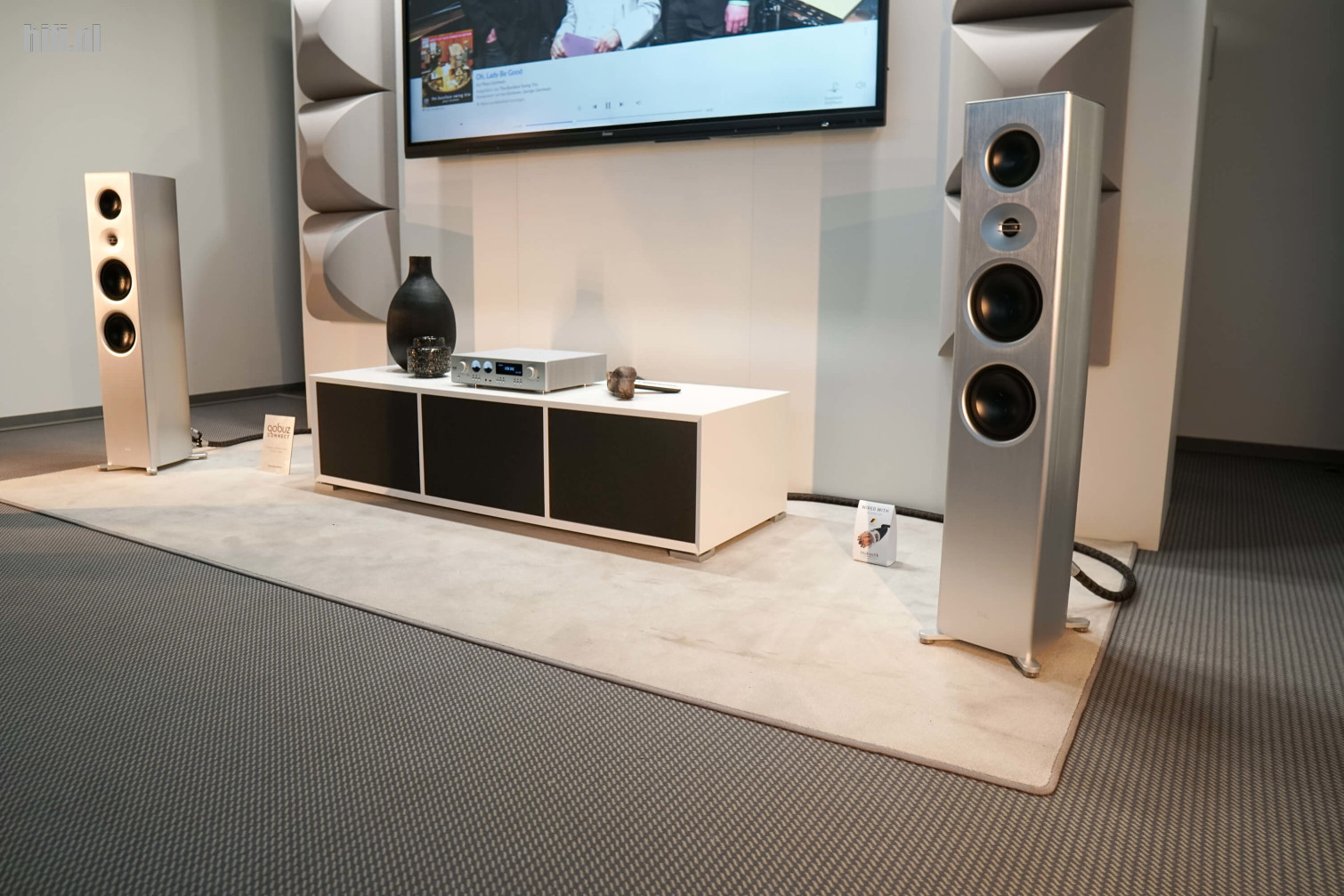 Enkele jaren geleden werden actieve speakers voorgesteld als ‘de toekomst’ van luidsprekers. Voor die stelling valt iets te zeggen, want met een perfect op elkaar afgestemde driver- en versterkergedeelte, plus een portie digitaal DSP en crossovers, kun je een optimale speakers bouwen. Die filosofie zie je in prestatiebeesten zoals de Focal Diva of de KEF LS60 Wireless – toevallig twee merken die niet naar München kwamen. Wie er wel was, was Kii. Het bedrijf, waar onder meer bekende Belgische ontwerper Bruno Putzeys achter zit, had een magnifieke ‘immersive’ demo opgebouwd met de Kii-modellen verspreid doorheen de kamer.