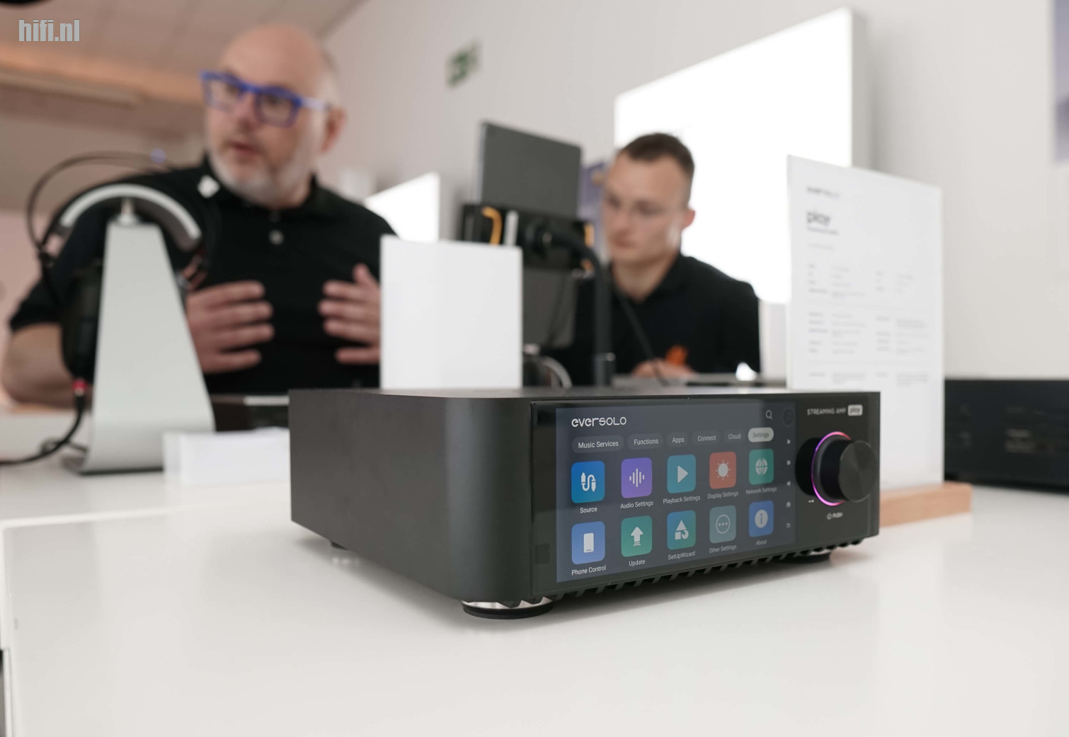 Iets subtieler maar even interessant is de RS451, een nieuwe streamer-DAC incluis HDMI-eARC en met een betere hoofdtelefoonversterker aan boord. De uitdagers in streamingland zijn zonder twijfel Eversolo en WiiM. Die eerste had een kamer die tot de nok gevuld was met nieuwe producten. Een aandachtstrekker was de Play-versterker, een compact ding dat prijstechnisch scherp in de markt wordt gezet en voorzien is van een groot touchdisplay en Eversolo’s app-gebaseerde interface. Doe er HDMI-ARC, kamercorrectie en ondersteuning voor diensten als Apple Music bij, en het wordt wel heel indrukwekkend. Er komt zelfs een 100 euro duurdere versie met geïntegreerde cd-drive – aan de zijkant!